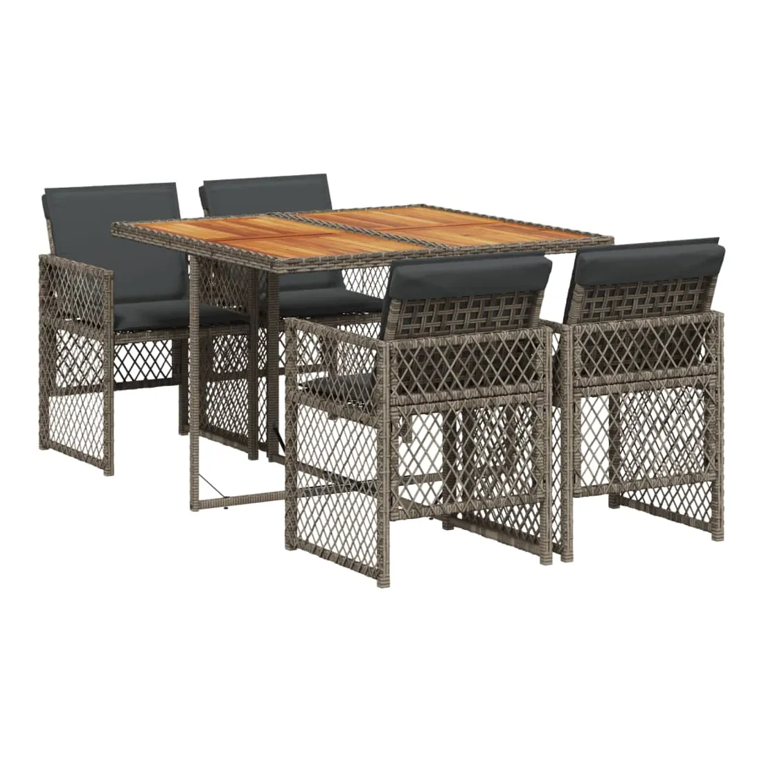 Cet ensemble de salle à manger de jardin est un excellent choix pour les repas en plein air ou pour vous détendre dans le jardin, l'arrière-cour ou le patio. Matériau durable : la résine tressée, également connue sous le nom de poly rotin, est un matériau synthétique solide et nécessitant peu d'entretien qui ressemble au rotin naturel. Elle est légère, facile à nettoyer et couramment utilisée pour les meubles d'extérieur en raison de sa durabilité et de ses propriétés de résistance aux intempéries. Dessus stable et facile à nettoyer : cette table de jardin a un dessus en bois d'acacia robuste, durable et facile à nettoyer avec un chiffon humide. Rangement compact : ces chaises sont dotées d'un dossier rabattable, ce qui permet de les ranger facilement sous la table. Une fois pliées, elles se rangent parfaitement sous la table, formant un cube peu encombrant. Expérience d'assise confortable : ce mobilier d'extérieur, doté de coussins épais, offre une expérience d'assise confortable. Housse amovible et lavable : ces coussins de siège sont dotés de housses amovibles pour un lavage et un entretien faciles. Les housses de coussin de chaise ont un rabat à l'arrière pour une fixation facile aux chaises. Bon à savoir :Pour que vos meubles d'extérieur restent beaux, nous vous recommandons de les protéger avec une housse imperméable.