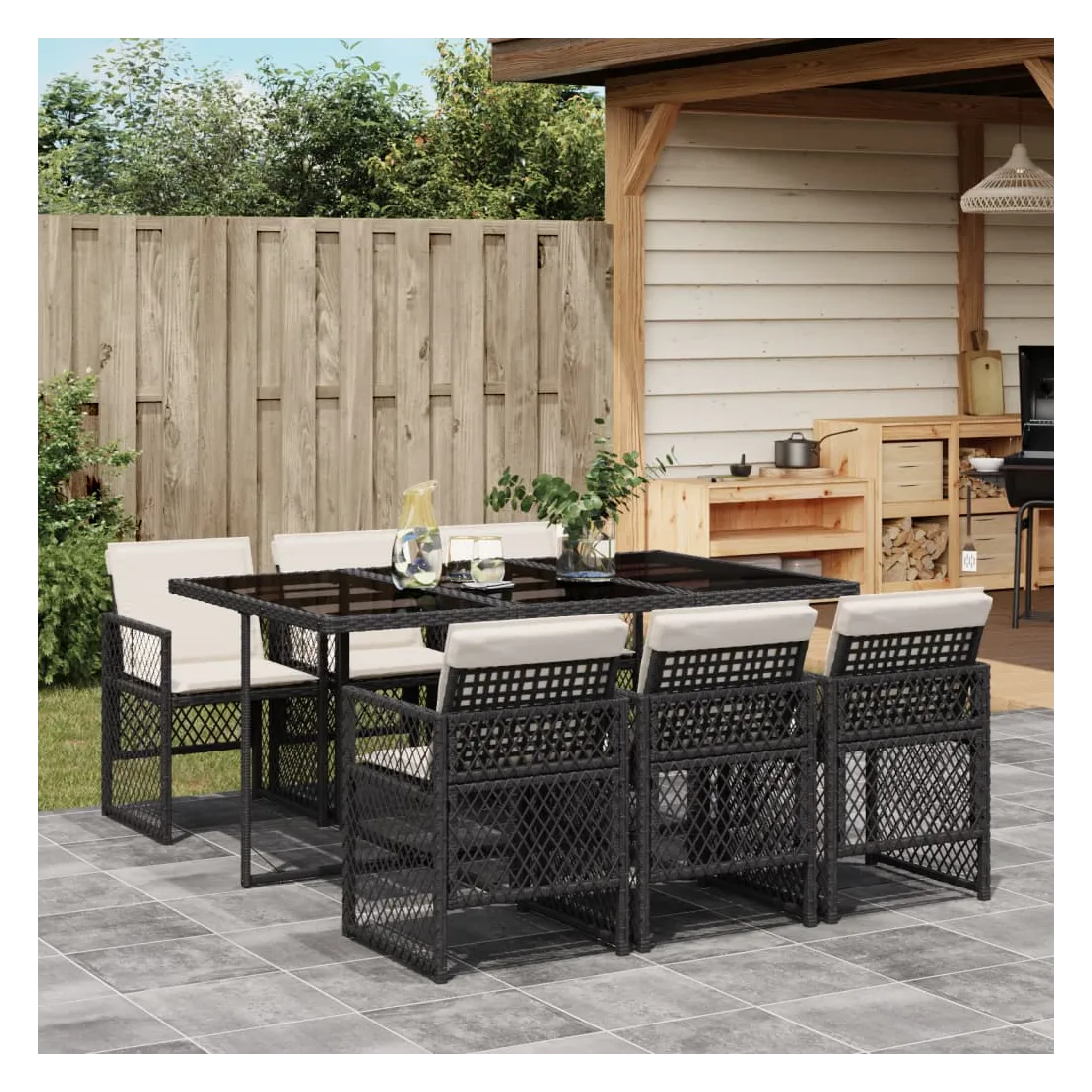 Cet ensemble de salle à manger de jardin est un excellent choix pour les repas en plein air ou pour vous détendre dans le jardin, l'arrière-cour ou le patio. Matériau durable : la résine tressée, également connue sous le nom de poly rotin, est un matériau synthétique solide et nécessitant peu d'entretien qui ressemble au rotin naturel. Elle est légère, facile à nettoyer et couramment utilisée pour les meubles d'extérieur en raison de sa durabilité et de ses propriétés de résistance aux intempéries. Dessus en verre : le dessus de la table d'extérieur est fabriqué en verre trempé solide et durable, ce qui le rend facile à nettoyer avec un chiffon humide et ajoute une touche d'élégance à votre espace extérieur. Rangement compact : ces chaises sont dotées d'un dossier rabattable, ce qui permet de les ranger facilement sous la table. Une fois pliées, elles se rangent parfaitement sous la table, formant un cube peu encombrant. Expérience d'assise confortable : ce mobilier d'extérieur, doté de coussins épais, offre une expérience d'assise confortable. Housse amovible et lavable : ces coussins de siège sont dotés de housses amovibles pour un lavage et un entretien faciles. Les housses de coussin de chaise ont un rabat à l'arrière pour une fixation facile aux chaises. Bon à savoir :Pour que vos meubles d'extérieur restent beaux, nous vous recommandons de les protéger avec une housse imperméable.