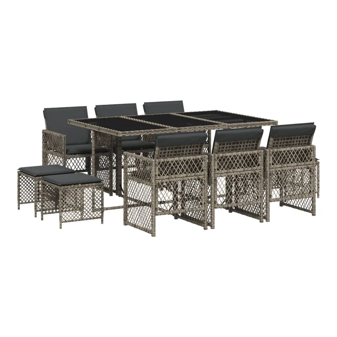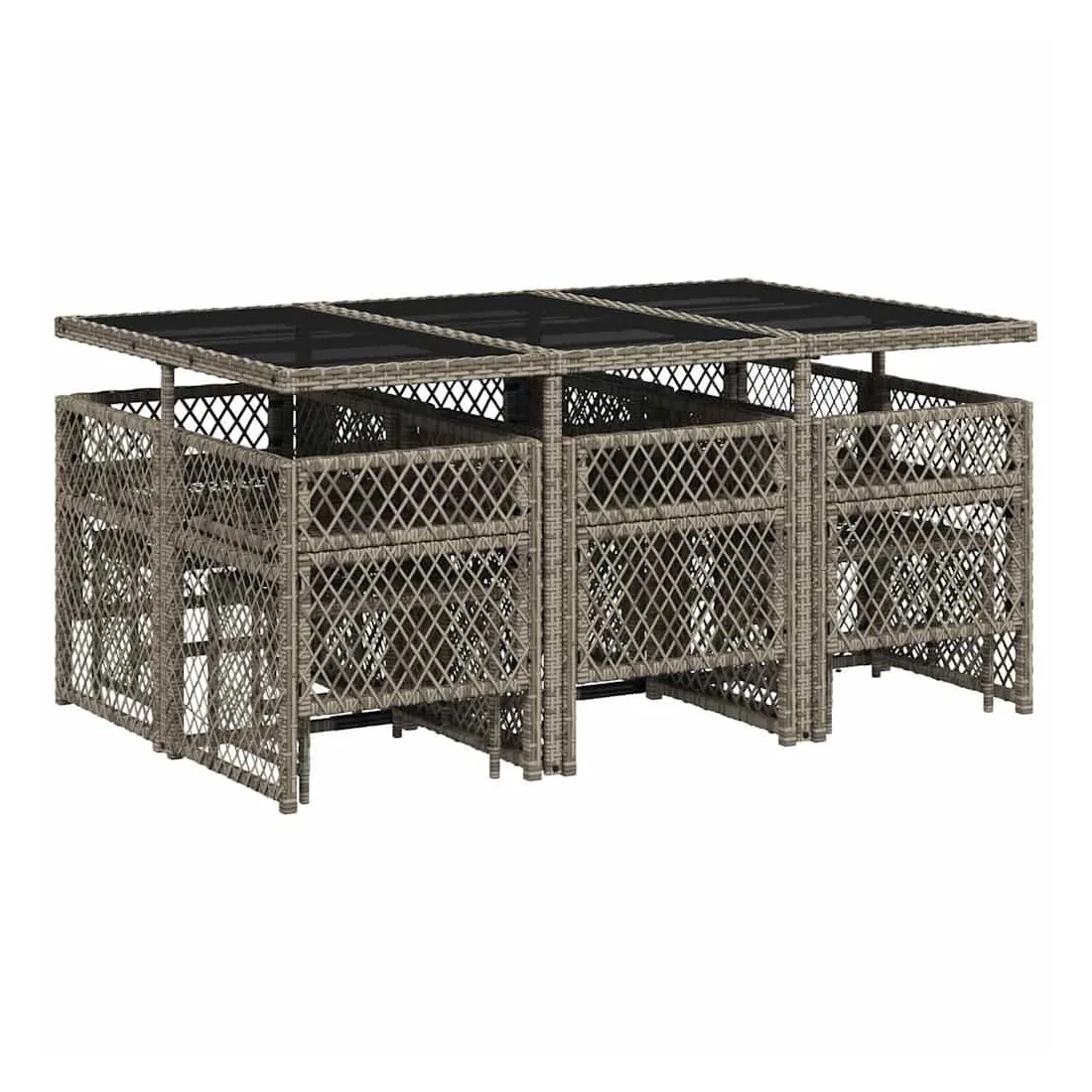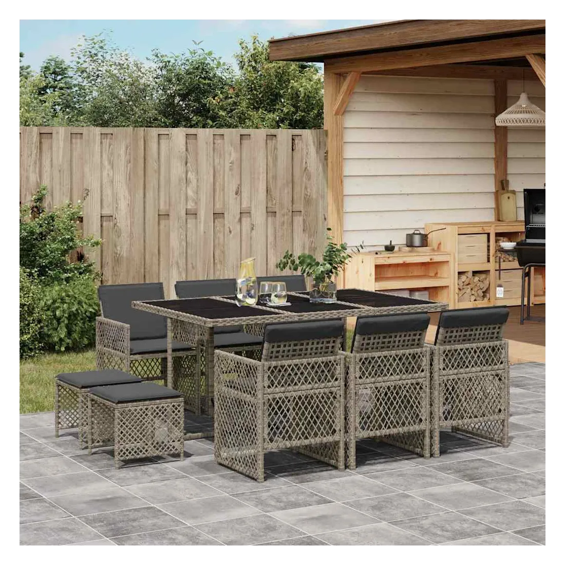 Cet ensemble de salle à manger de jardin est un excellent choix pour les repas en plein air ou pour vous détendre dans le jardin, l'arrière-cour ou le patio. Matériau durable : la résine tressée, également connue sous le nom de poly rotin, est un matériau synthétique solide et nécessitant peu d'entretien qui ressemble au rotin naturel. Elle est légère, facile à nettoyer et couramment utilisée pour les meubles d'extérieur en raison de sa durabilité et de ses propriétés de résistance aux intempéries. Dessus en verre : le dessus de la table d'extérieur est fabriqué en verre trempé solide et durable, ce qui le rend facile à nettoyer avec un chiffon humide et ajoute une touche d'élégance à votre espace extérieur. Rangement compact : ces chaises sont dotées d'un dossier rabattable, ce qui permet de les ranger facilement sous la table. Une fois pliées, elles se rangent parfaitement sous la table, formant un cube peu encombrant. De plus, les tabourets peuvent également être rangés sous les chaises, maximisant encore davantage l'efficacité de l'espace. Expérience d'assise confortable : ce mobilier d'extérieur, doté de coussins épais, offre une expérience d'assise confortable. Housse amovible et lavable : ces coussins de siège sont dotés de housses amovibles pour un lavage et un entretien faciles. Les housses de coussin de chaise ont un rabat à l'arrière pour une fixation facile aux chaises. Bon à savoir :Pour que vos meubles d'extérieur restent beaux, nous vous recommandons de les protéger avec une housse imperméable.