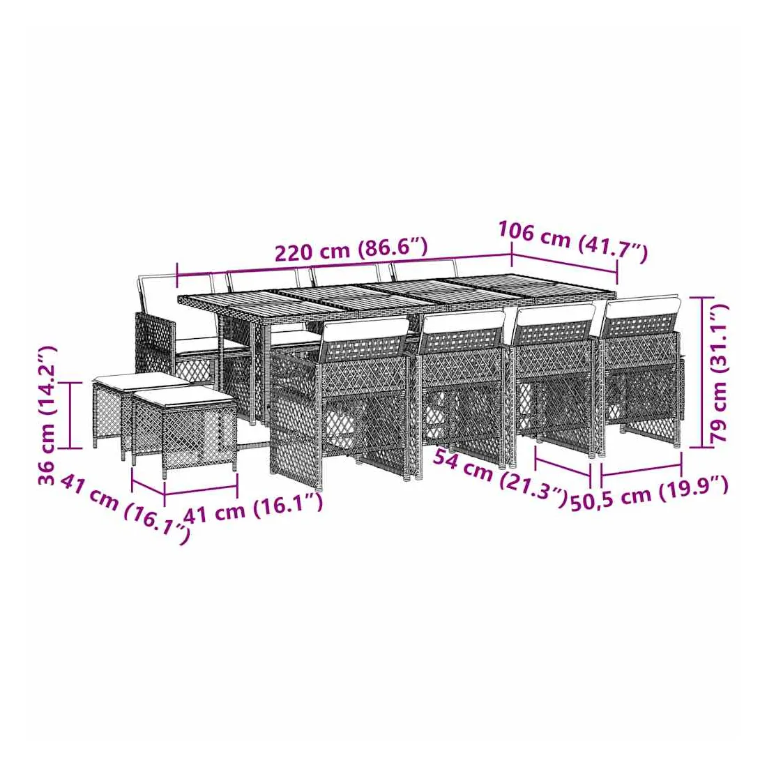 Cet ensemble de salle à manger de jardin est un excellent choix pour les repas en plein air ou pour vous détendre dans le jardin, l'arrière-cour ou le patio. Matériau durable : la résine tressée, également connue sous le nom de poly rotin, est un matériau synthétique solide et nécessitant peu d'entretien qui ressemble au rotin naturel. Elle est légère, facile à nettoyer et couramment utilisée pour les meubles d'extérieur en raison de sa durabilité et de ses propriétés de résistance aux intempéries. Dessus stable et facile à nettoyer : cette table de jardin a un dessus en bois d'acacia robuste, durable et facile à nettoyer avec un chiffon humide. Rangement compact : ces chaises sont dotées d'un dossier rabattable, ce qui permet de les ranger facilement sous la table. Une fois pliées, elles se rangent parfaitement sous la table, formant un cube peu encombrant. De plus, les tabourets peuvent également être rangés sous les chaises, maximisant encore davantage l'efficacité de l'espace. Expérience d'assise confortable : ce mobilier d'extérieur, doté de coussins épais, offre une expérience d'assise confortable. Housse amovible et lavable : ces coussins de siège sont dotés de housses amovibles pour un lavage et un entretien faciles. Les housses de coussin de chaise ont un rabat à l'arrière pour une fixation facile aux chaises. Bon à savoir :Pour que vos meubles d'extérieur restent beaux, nous vous recommandons de les protéger avec une housse imperméable.