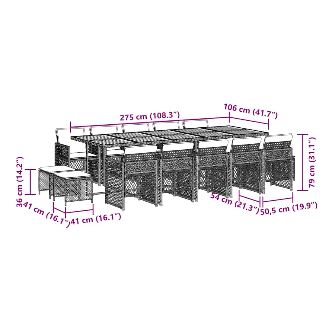 - Dimensions du tabouret de jardin : 41 x 41 x 36 cm (l x P x H)