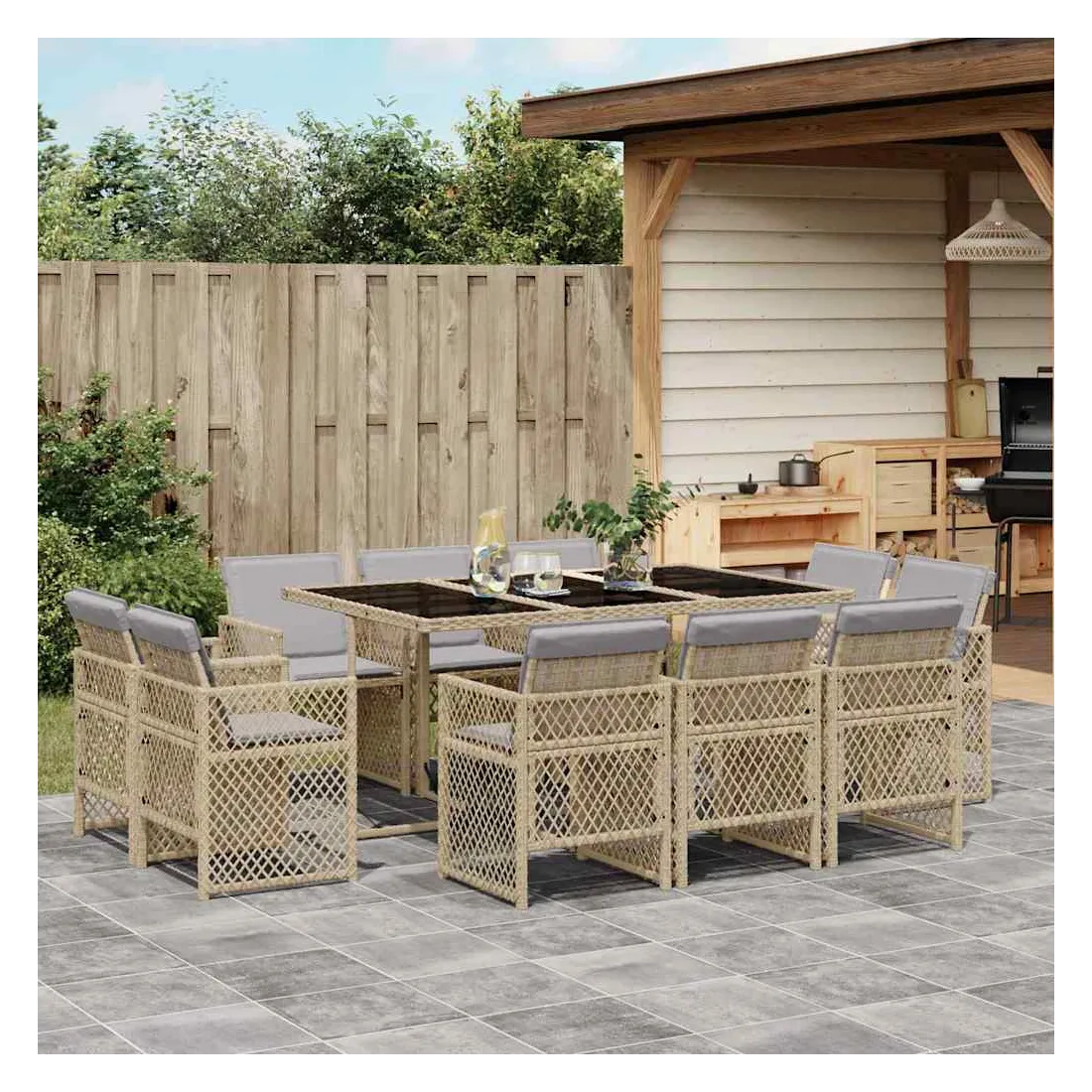 Cet ensemble de salle à manger de jardin est un excellent choix pour les repas en plein air ou pour vous détendre dans le jardin, dans l'arrière-cour ou sur la terrasse. Matériau durable : la résine tressée, également connue sous le nom de poly rotin, est un matériau synthétique solide et nécessitant peu d'entretien qui ressemble au rotin naturel. Elle est légère, facile à nettoyer et couramment utilisée pour les meubles d'extérieur en raison de sa durabilité et de ses propriétés de résistance aux intempéries.Rangement compact : ces chaises sont dotées d'un dossier à rabat qui peut être rabattu pour un rangement compact.Expérience d'assise confortable : ce mobilier d'extérieur, doté de coussins épais, offre une expérience d'assise confortable.Housse amovible et lavable : ces coussins de siège sont dotés de housses amovibles pour un lavage et un entretien faciles. Les housses de coussin de chaise ont un rabat à l'arrière pour une fixation facile aux chaises.Dessus stable et facile à nettoyer : cette table de jardin est dotée d'un dessus en verre trempé robuste, durable et facile à nettoyer à l'aide d'un chiffon humide. Bon à savoir : Pour que vos meubles d'extérieur restent beaux, nous vous recommandons de les protéger avec une housse imperméable.