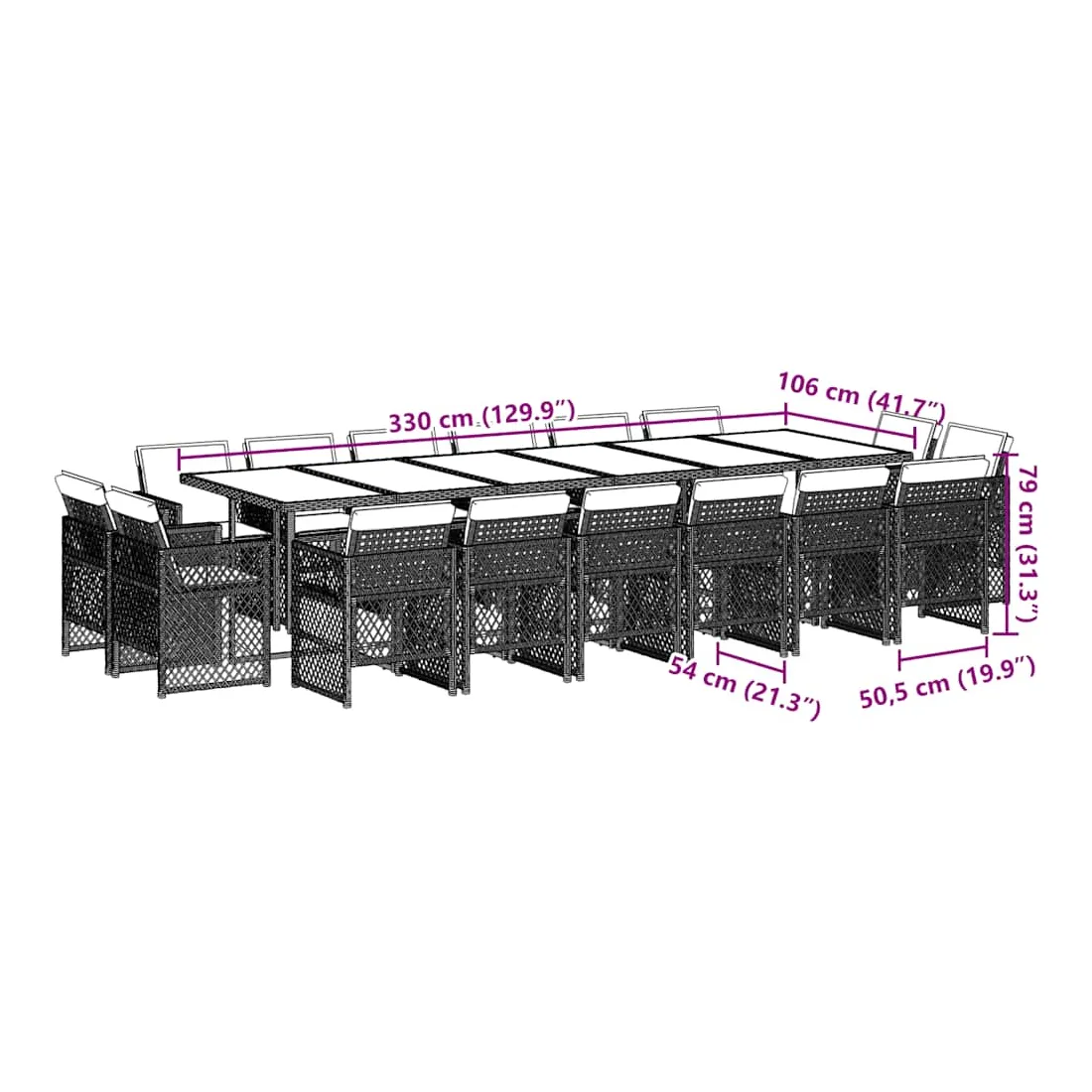 - Dimensions : 330 x 106 x 73 cm (L x l x H)