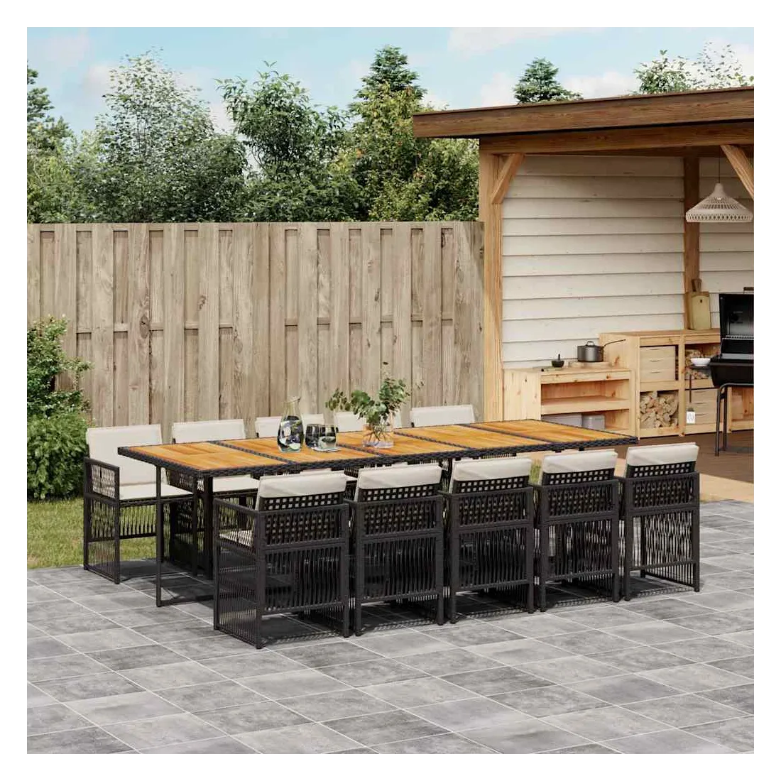 - Matériau : résine tressée, acier enduit de poudre, bois d'acacia massif avec finition à l'huile