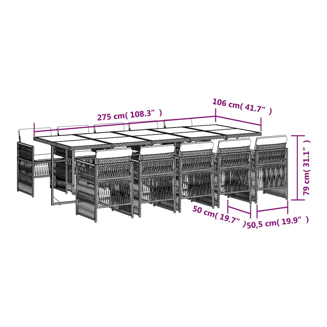 - Dimensions : 275 x 106 x 73 cm (L x l x H)