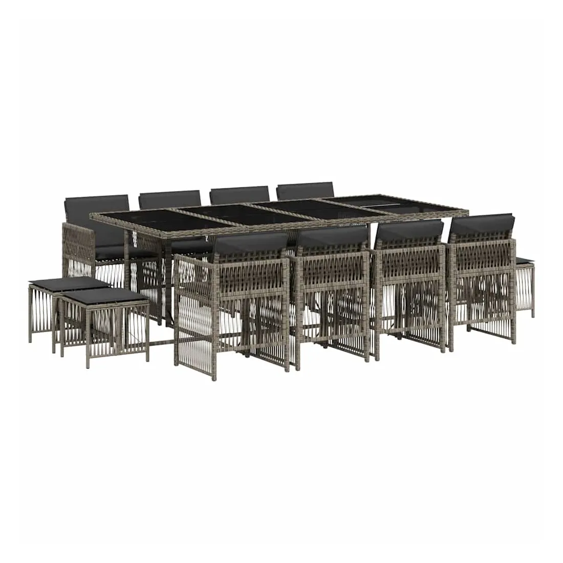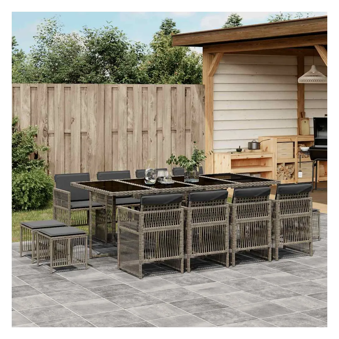 Cet ensemble de salle à manger de jardin est un excellent choix pour les repas en plein air ou pour vous détendre dans le jardin, dans l'arrière-cour ou sur la terrasse. Matériau durable : la résine tressée, également connue sous le nom de poly rotin, est un matériau synthétique solide et nécessitant peu d'entretien qui ressemble au rotin naturel. Il est léger, facile à nettoyer et couramment utilisé pour les meubles d'extérieur en raison de sa durabilité et de ses propriétés de résistance aux intempéries.Rangement compact : ces chaises sont dotées d'un dossier rabattable, ce qui permet de les ranger facilement sous la table. Une fois pliées, elles se rangent parfaitement sous la table, formant un cube peu encombrant. De plus, les tabourets peuvent également être rangés sous les chaises, maximisant encore davantage l'efficacité de l'espace.Expérience d'assise confortable : ce mobilier d'extérieur, doté de coussins épais, offre une expérience d'assise confortable.Housse amovible et lavable : ces coussins sont dotés de housses amovibles pour un lavage et un entretien faciles. Les housses de coussin ont un rabat à l'arrière pour une fixation facile aux dossiers.Dessus en verre : le dessus de la table d'extérieur est fabriqué en verre trempé solide et durable, ce qui le rend facile à nettoyer avec un chiffon humide et ajoute une touche d'élégance à votre espace extérieur. Bon à savoir : Pour que vos meubles d'extérieur restent beaux, nous vous recommandons de les protéger avec une housse imperméable.
