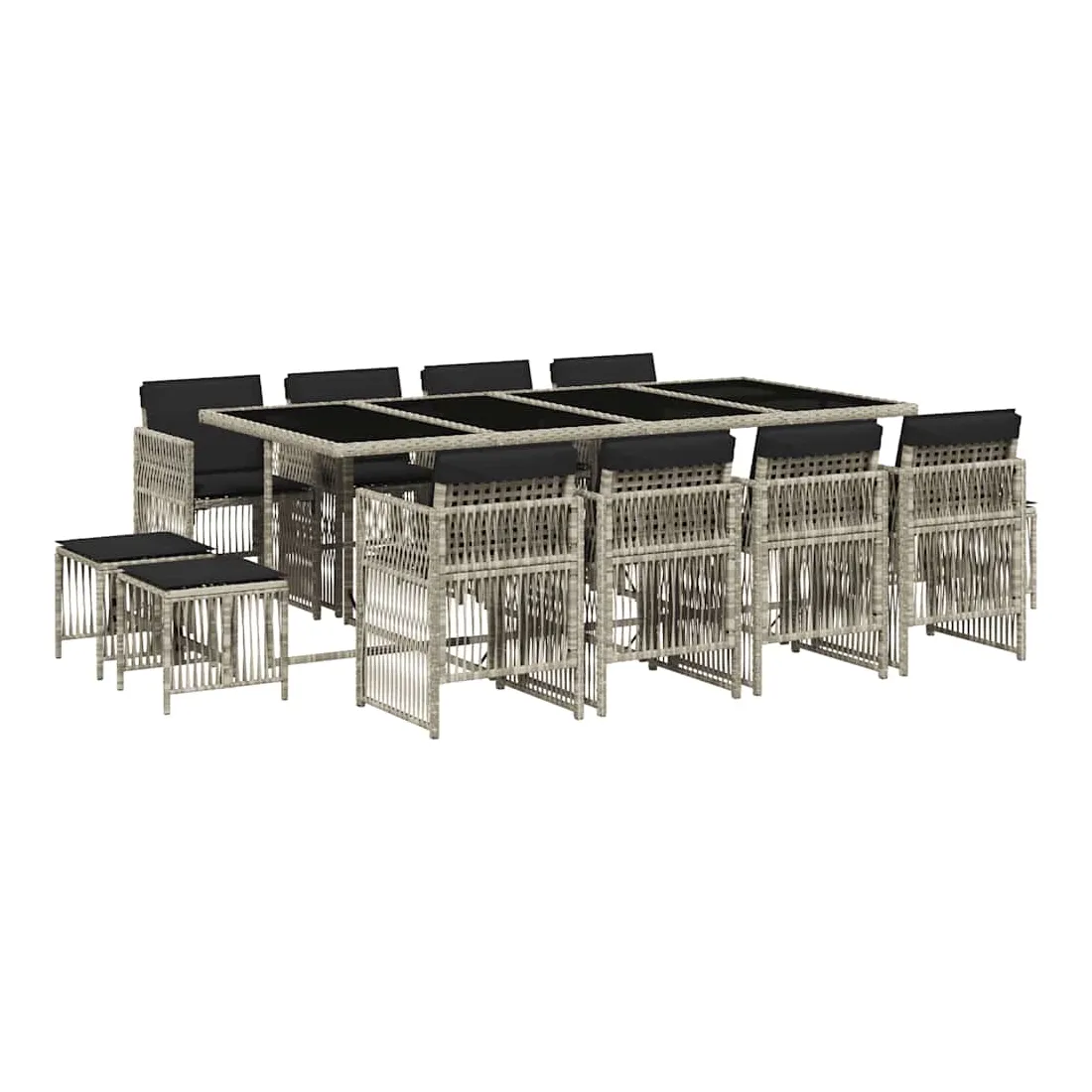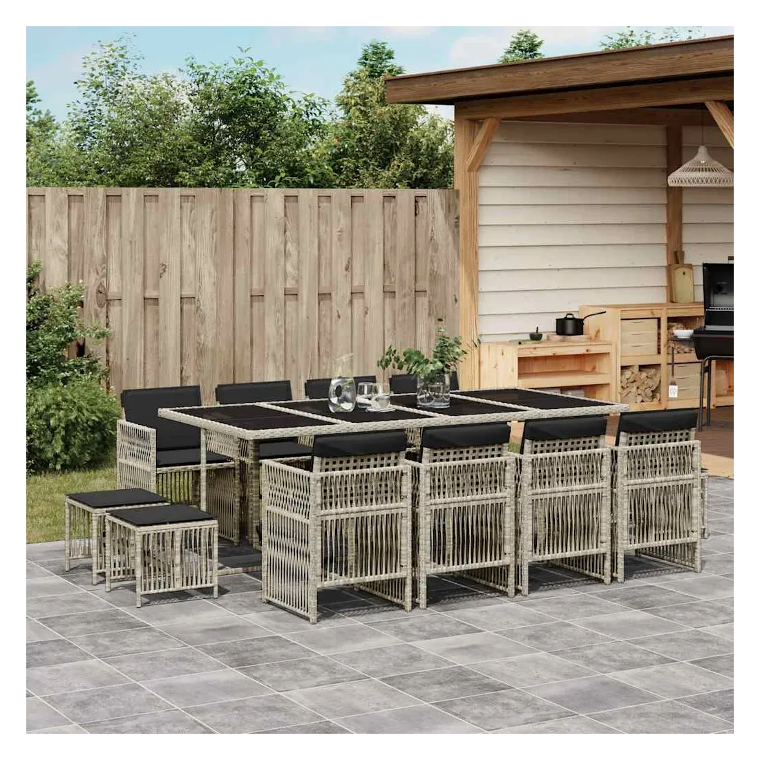 Cet ensemble de salle à manger de jardin est un excellent choix pour les repas en plein air ou pour vous détendre dans le jardin, dans l'arrière-cour ou sur la terrasse. Matériau durable : la résine tressée, également connue sous le nom de poly rotin, est un matériau synthétique solide et nécessitant peu d'entretien qui ressemble au rotin naturel. Il est léger, facile à nettoyer et couramment utilisé pour les meubles d'extérieur en raison de sa durabilité et de ses propriétés de résistance aux intempéries.Rangement compact : ces chaises sont dotées d'un dossier rabattable, ce qui permet de les ranger facilement sous la table. Une fois pliées, elles se rangent parfaitement sous la table, formant un cube peu encombrant. De plus, les tabourets peuvent également être rangés sous les chaises, maximisant encore davantage l'efficacité de l'espace.Expérience d'assise confortable : ce mobilier d'extérieur, doté de coussins épais, offre une expérience d'assise confortable.Housse amovible et lavable : ces coussins sont dotés de housses amovibles pour un lavage et un entretien faciles. Les housses de coussin ont un rabat à l'arrière pour une fixation facile aux dossiers.Dessus en verre : le dessus de la table d'extérieur est fabriqué en verre trempé solide et durable, ce qui le rend facile à nettoyer avec un chiffon humide et ajoute une touche d'élégance à votre espace extérieur. Bon à savoir : Pour que vos meubles d'extérieur restent beaux, nous vous recommandons de les protéger avec une housse imperméable.