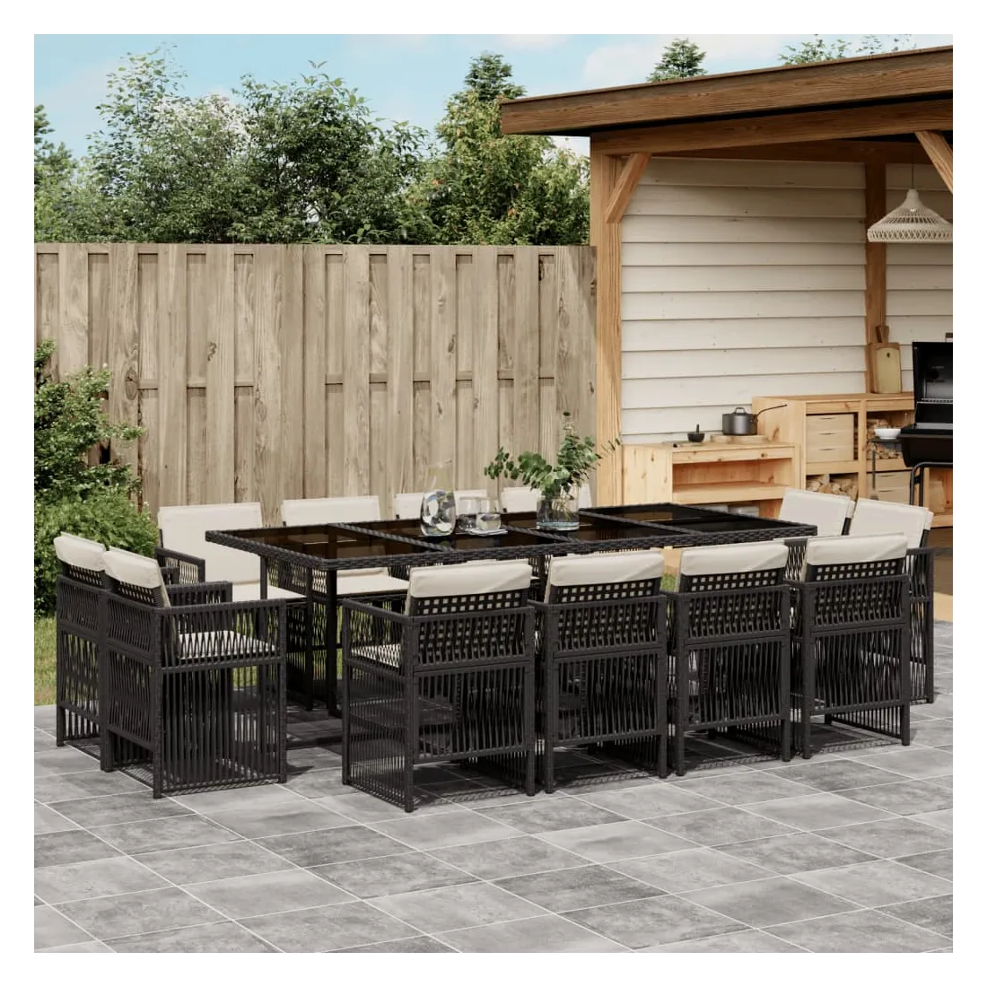 Cet ensemble de salle à manger de jardin est un excellent choix pour les repas en plein air ou pour vous détendre dans le jardin, dans l'arrière-cour ou sur la terrasse. Matériau durable : la résine tressée, également connue sous le nom de poly rotin, est un matériau synthétique solide et nécessitant peu d'entretien qui ressemble au rotin naturel. Il est léger, facile à nettoyer et couramment utilisé pour les meubles d'extérieur en raison de sa durabilité et de ses propriétés de résistance aux intempéries.Rangement compact : ces chaises sont dotées d'un dossier rabattable, ce qui permet de les ranger facilement sous la table. Une fois pliées, elles se rangent parfaitement sous la table, formant un cube peu encombrant.Expérience d'assise confortable : ce mobilier d'extérieur, doté de coussins épais, offre une expérience d'assise confortable.Housse amovible et lavable : ces coussins sont dotés de housses amovibles pour un lavage et un entretien faciles. Les housses de coussin ont un rabat à l'arrière pour une fixation facile aux dossiers.Dessus en verre : le dessus de la table d'extérieur est fabriqué en verre trempé solide et durable, ce qui le rend facile à nettoyer avec un chiffon humide et ajoute une touche d'élégance à votre espace extérieur. Bon à savoir : Pour que vos meubles d'extérieur restent beaux, nous vous recommandons de les protéger avec une housse imperméable.