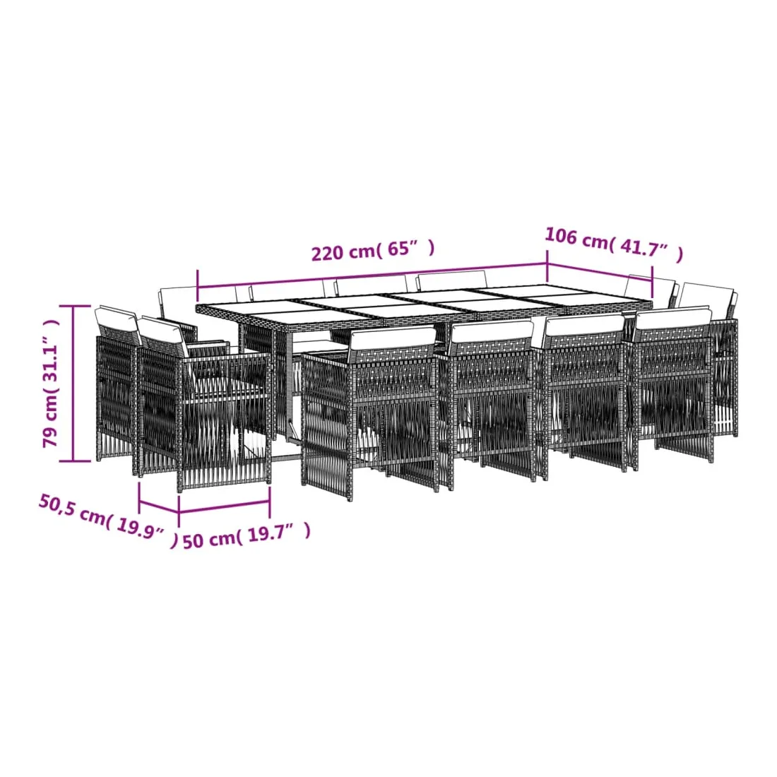 - Dimensions : 220 x 106 x 73 cm (L x l x H)