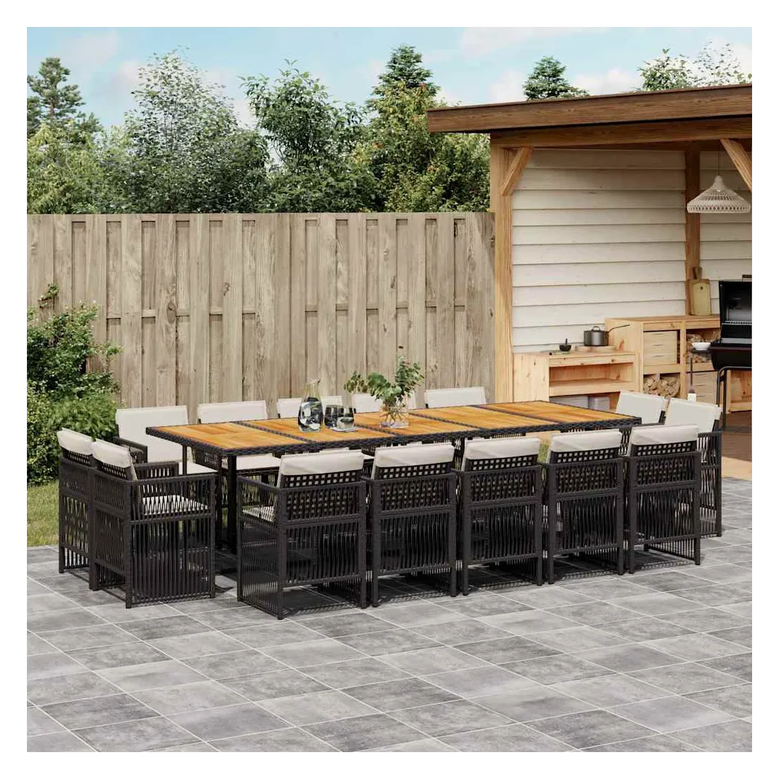 - Matériau : résine tressée, acier enduit de poudre, bois d'acacia massif avec finition à l'huile