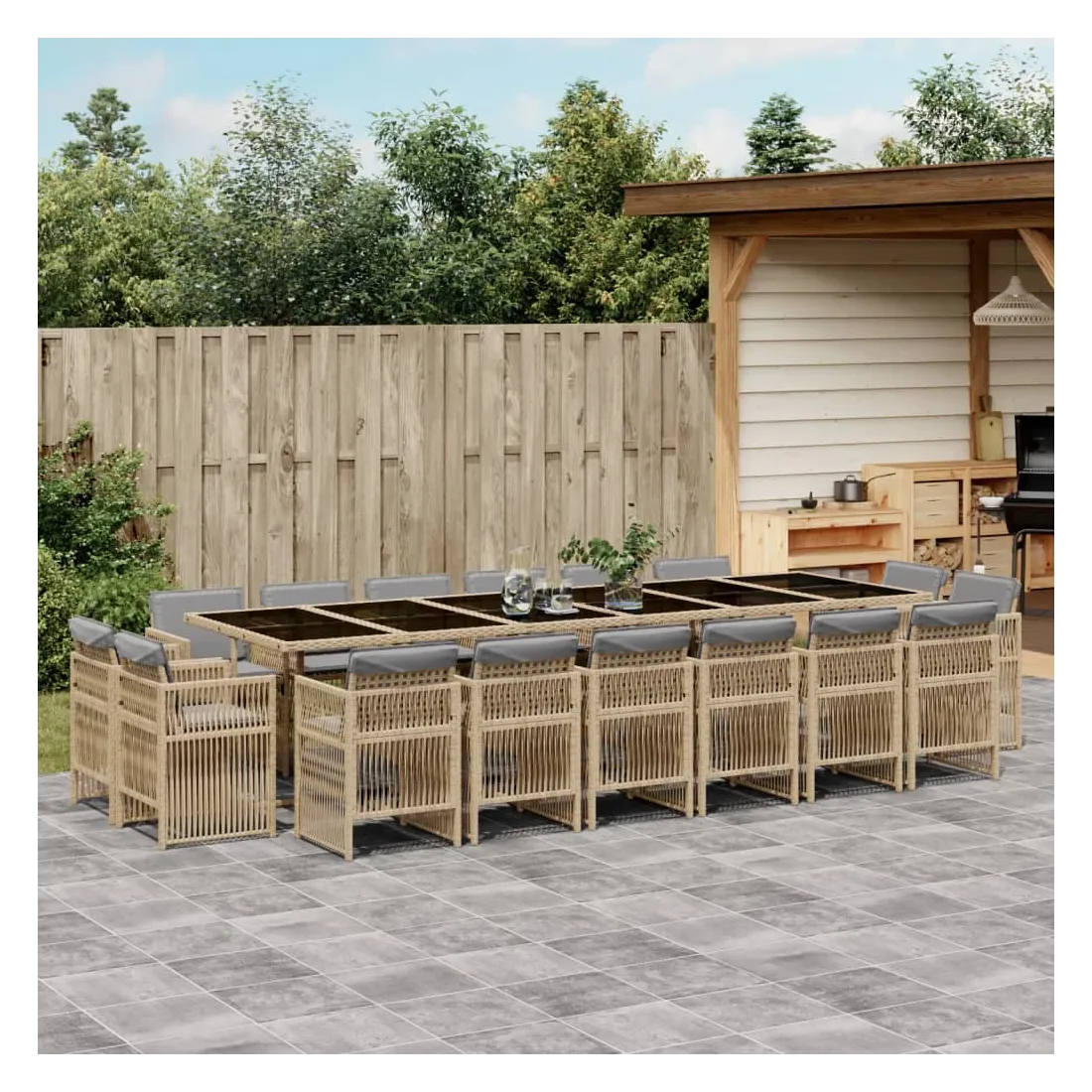 Cet ensemble de salle à manger de jardin est un excellent choix pour les repas en plein air ou pour vous détendre dans le jardin, dans l'arrière-cour ou sur la terrasse. Matériau durable : la résine tressée, également connue sous le nom de poly rotin, est un matériau synthétique solide et nécessitant peu d'entretien qui ressemble au rotin naturel. Il est léger, facile à nettoyer et couramment utilisé pour les meubles d'extérieur en raison de sa durabilité et de ses propriétés de résistance aux intempéries.Rangement compact : ces chaises sont dotées d'un dossier rabattable, ce qui permet de les ranger facilement sous la table. Une fois pliées, elles se rangent parfaitement sous la table, formant un cube peu encombrant.Expérience d'assise confortable : ce mobilier d'extérieur, doté de coussins épais, offre une expérience d'assise confortable.Housse amovible et lavable : ces coussins sont dotés de housses amovibles pour un lavage et un entretien faciles. Les housses de coussin ont un rabat à l'arrière pour une fixation facile aux dossiers.Dessus en verre : le dessus de la table d'extérieur est fabriqué en verre trempé solide et durable, ce qui le rend facile à nettoyer avec un chiffon humide et ajoute une touche d'élégance à votre espace extérieur. Bon à savoir : Pour que vos meubles d'extérieur restent beaux, nous vous recommandons de les protéger avec une housse imperméable.
