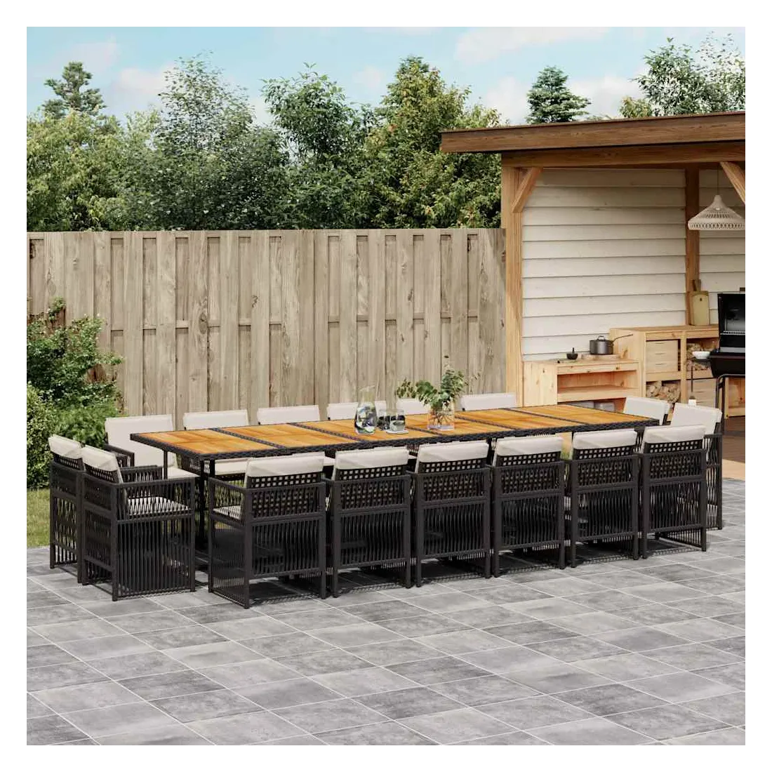 Cet ensemble de salle à manger de jardin est un excellent choix pour les repas en plein air ou pour vous détendre dans le jardin, dans l'arrière-cour ou sur la terrasse. Matériau durable : la résine tressée, également connue sous le nom de poly rotin, est un matériau synthétique solide et nécessitant peu d'entretien qui ressemble au rotin naturel. Il est léger, facile à nettoyer et couramment utilisé pour les meubles d'extérieur en raison de sa durabilité et de ses propriétés de résistance aux intempéries.Rangement compact : ces chaises sont dotées d'un dossier rabattable, ce qui permet de les ranger facilement sous la table. Une fois pliées, elles se rangent parfaitement sous la table, formant un cube peu encombrant.Expérience d'assise confortable : ce mobilier d'extérieur, doté de coussins épais, offre une expérience d'assise confortable.Housse amovible et lavable : ces coussins sont dotés de housses amovibles pour un lavage et un entretien faciles. Les housses de coussin ont un rabat à l'arrière pour une fixation facile aux dossiers.Dessus stable et facile à nettoyer : cette table de jardin a un dessus en bois d'acacia robuste, durable et facile à nettoyer avec un chiffon humide. Bon à savoir : Pour que vos meubles d'extérieur restent beaux, nous vous recommandons de les protéger avec une housse imperméable.