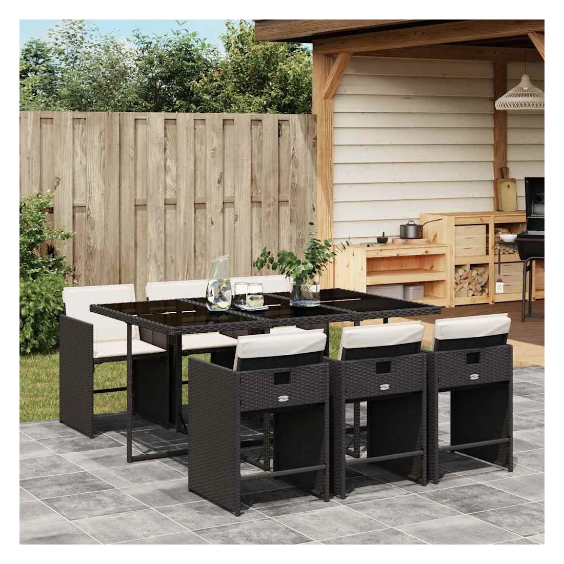 Cet ensemble de salle à manger de jardin est un excellent choix pour les repas en plein air ou pour vous détendre dans le jardin, dans l'arrière-cour ou sur la terrasse. Matériau durable : la résine tressée, également connue sous le nom de poly rotin, est un matériau synthétique solide et nécessitant peu d'entretien qui ressemble au rotin naturel. Il est léger, facile à nettoyer et couramment utilisé pour les meubles d'extérieur en raison de sa durabilité et de ses propriétés de résistance aux intempéries.Rangement compact : ces chaises sont dotées d'un dossier rabattable, ce qui permet de les ranger facilement sous la table. Une fois pliées, elles se rangent parfaitement sous la table, formant un cube peu encombrant.Expérience d'assise confortable : ce mobilier d'extérieur, doté de coussins bien rembourrés, offre une expérience d'assise confortable.Housse amovible et lavable : ces coussins de siège sont dotés de housses amovibles pour un lavage et un entretien faciles. Les housses de coussin de chaise ont un rabat à l'arrière pour une fixation facile aux chaises.Dessus stable et facile à nettoyer : cette table de jardin est dotée d'un dessus en verre trempé robuste, durable et facile à nettoyer à l'aide d'un chiffon humide. Bon à savoir : Pour que vos meubles d'extérieur restent beaux, nous vous recommandons de les protéger avec une housse imperméable.