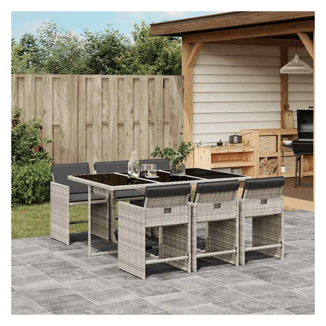 Cet ensemble de salle à manger de jardin est un excellent choix pour les repas en plein air ou pour vous détendre dans le jardin, dans l'arrière-cour ou sur la terrasse. Matériau durable : la résine tressée, également connue sous le nom de poly rotin, est un matériau synthétique solide et nécessitant peu d'entretien qui ressemble au rotin naturel. Il est léger, facile à nettoyer et couramment utilisé pour les meubles d'extérieur en raison de sa durabilité et de ses propriétés de résistance aux intempéries.Rangement compact : ces chaises sont dotées d'un dossier rabattable, ce qui permet de les ranger facilement sous la table. Une fois pliées, elles se rangent parfaitement sous la table, formant un cube peu encombrant.Expérience d'assise confortable : ce mobilier d'extérieur, doté de coussins épais, offre une expérience d'assise confortable.Housse amovible et lavable : ces coussins de siège sont dotés de housses amovibles pour un lavage et un entretien faciles. Les housses de coussin de chaise ont un rabat à l'arrière pour une fixation facile aux chaises.Dessus stable et facile à nettoyer : cette table de jardin est dotée d'un dessus en verre trempé robuste, durable et facile à nettoyer à l'aide d'un chiffon humide. Bon à savoir : Pour que vos meubles d'extérieur restent beaux, nous vous recommandons de les protéger avec une housse imperméable.