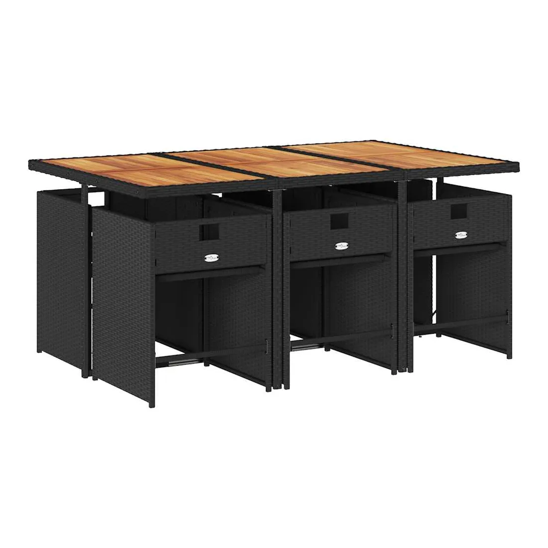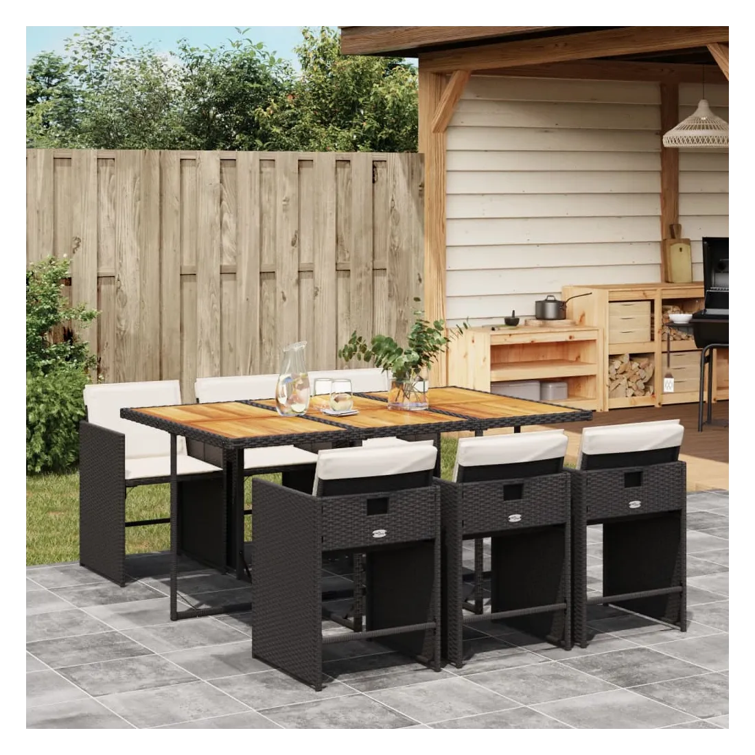 Ensemble à manger de jardin coussins 7pcs Noir Résine tressée