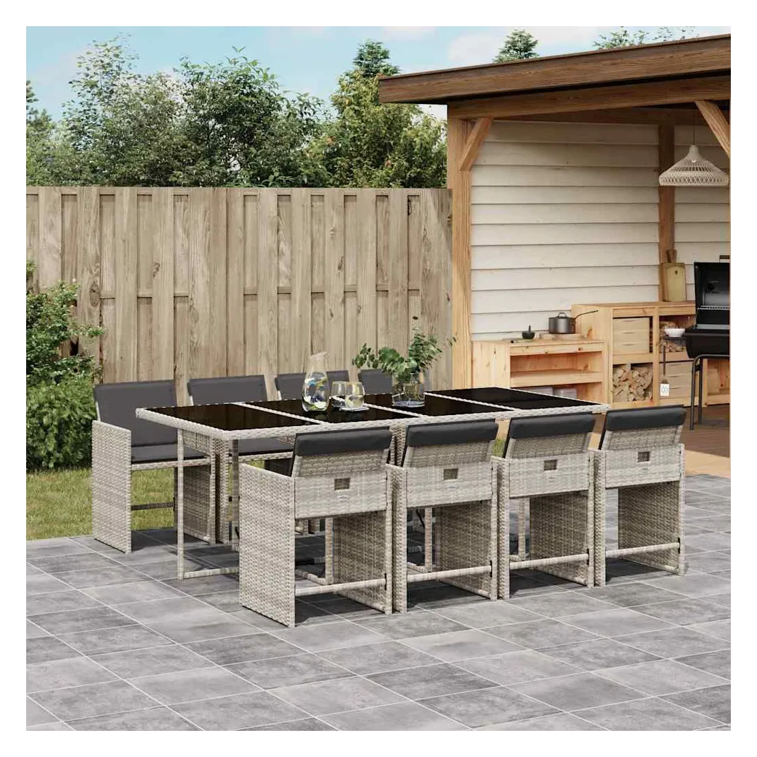 Cet ensemble de salle à manger de jardin est un excellent choix pour les repas en plein air ou pour vous détendre dans le jardin, dans l'arrière-cour ou sur la terrasse. Matériau durable : la résine tressée, également connue sous le nom de poly rotin, est un matériau synthétique solide et nécessitant peu d'entretien qui ressemble au rotin naturel. Il est léger, facile à nettoyer et couramment utilisé pour les meubles d'extérieur en raison de sa durabilité et de ses propriétés de résistance aux intempéries.Rangement compact : ces chaises sont dotées d'un dossier rabattable, ce qui permet de les ranger facilement sous la table. Une fois pliées, elles se rangent parfaitement sous la table, formant un cube peu encombrant.Expérience d'assise confortable : ce mobilier d'extérieur, doté de coussins épais, offre une expérience d'assise confortable.Housse amovible et lavable : ces coussins de siège sont dotés de housses amovibles pour un lavage et un entretien faciles. Les housses de coussin de chaise ont un rabat à l'arrière pour une fixation facile aux chaises.Dessus stable et facile à nettoyer : cette table de jardin est dotée d'un dessus en verre trempé robuste, durable et facile à nettoyer à l'aide d'un chiffon humide. Bon à savoir : Pour que vos meubles d'extérieur restent beaux, nous vous recommandons de les protéger avec une housse imperméable.