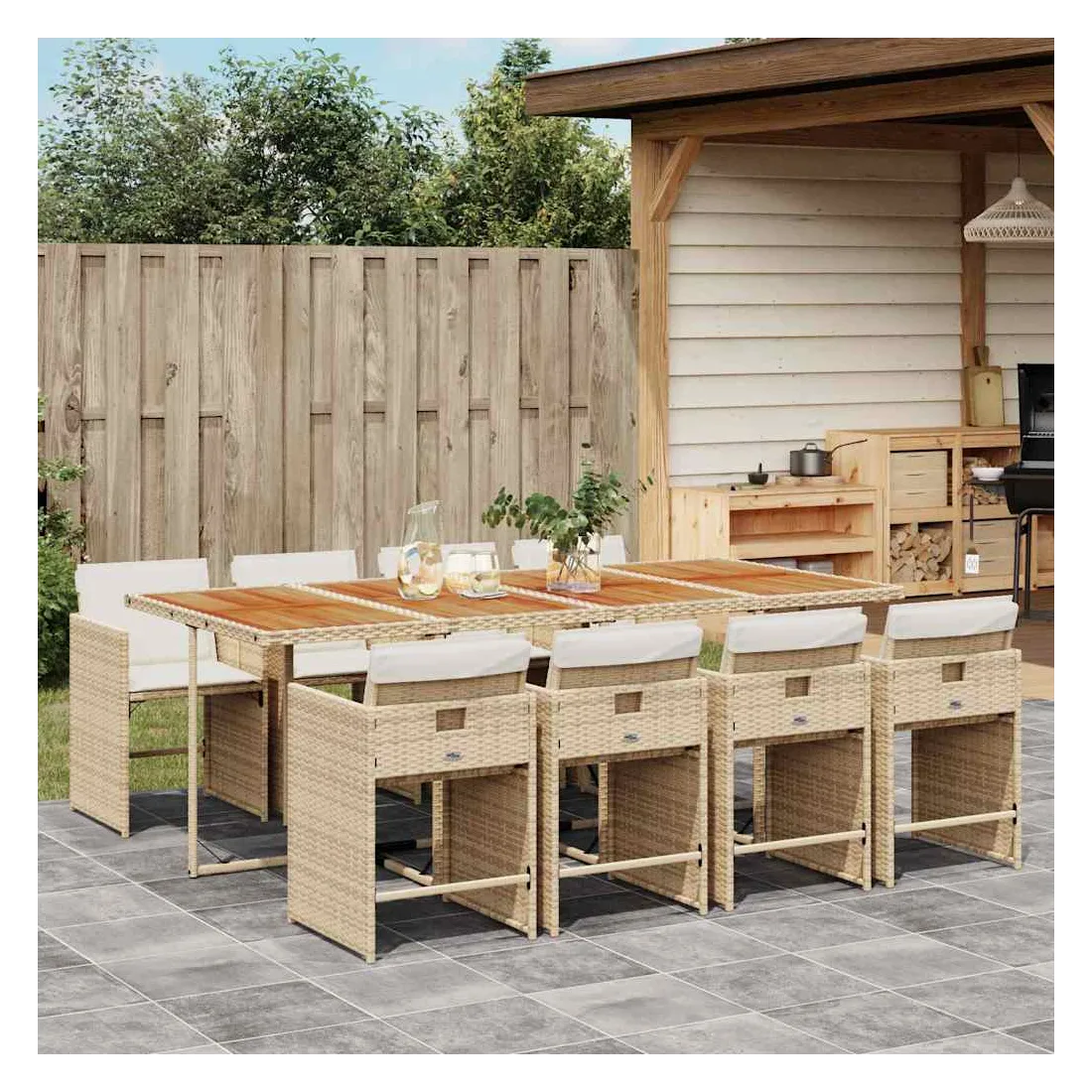 - Matériau : résine tressée, acier enduit de poudre, bois d'acacia massif