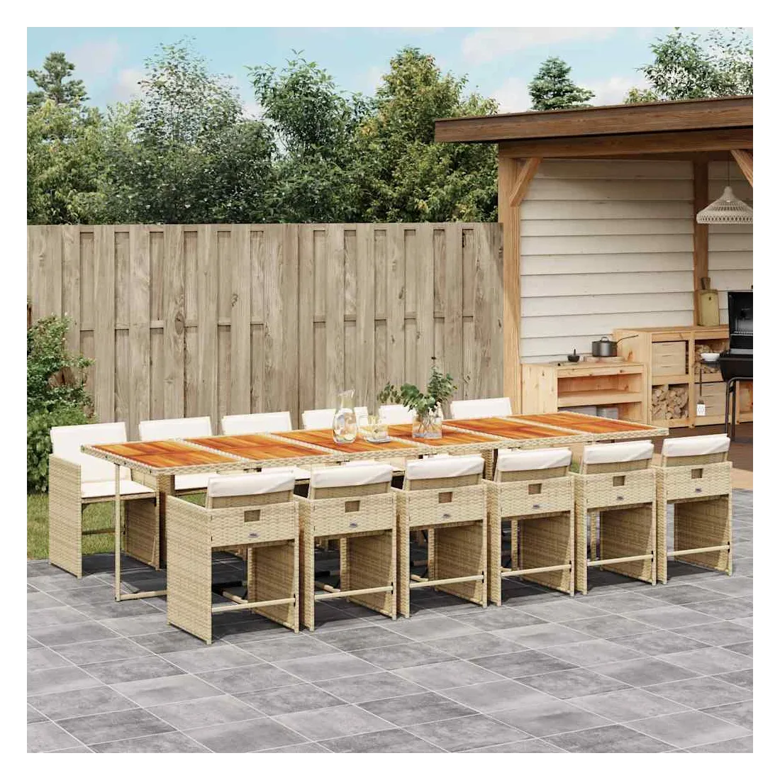 - Matériau : résine tressée, acier enduit de poudre, bois d'acacia massif