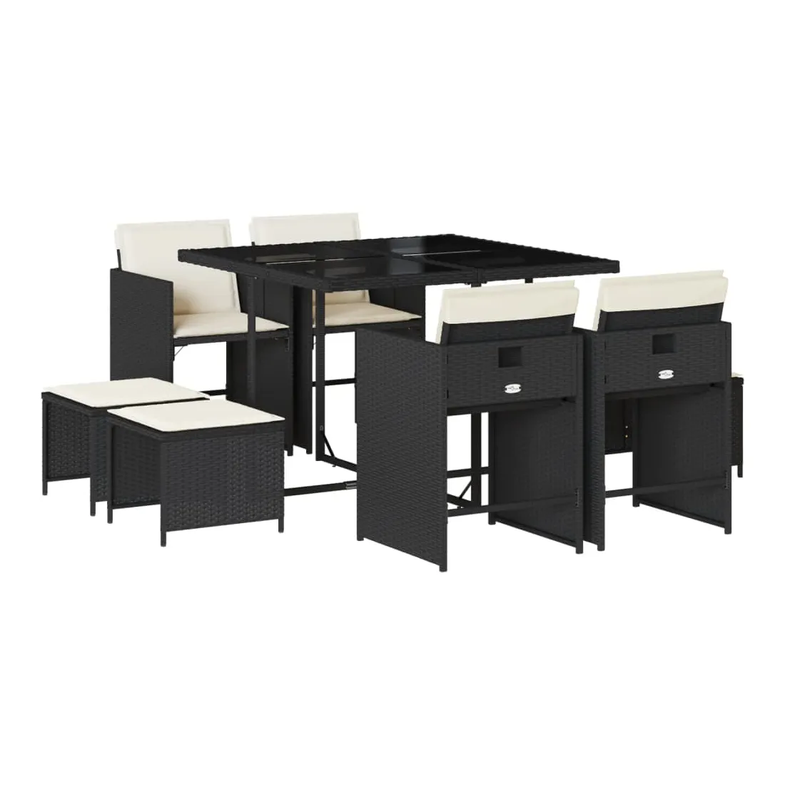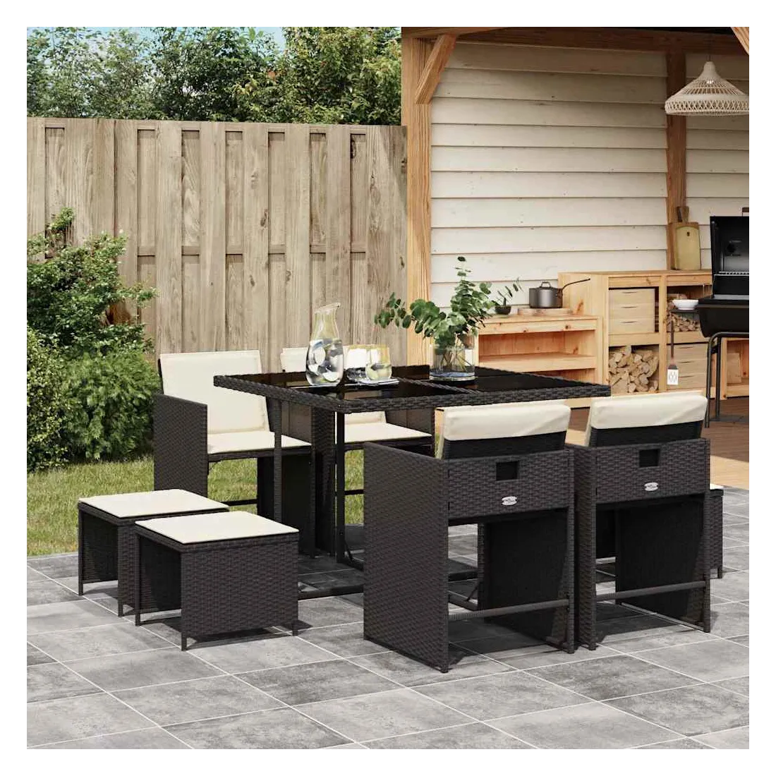Cet ensemble de salle à manger de jardin est un excellent choix pour les repas en plein air ou pour vous détendre dans le jardin, dans l'arrière-cour ou sur la terrasse. Matériau durable : la résine tressée, également connue sous le nom de poly rotin, est un matériau synthétique solide et nécessitant peu d'entretien qui ressemble au rotin naturel. Il est léger, facile à nettoyer et couramment utilisé pour les meubles d'extérieur en raison de sa durabilité et de ses propriétés de résistance aux intempéries.Rangement compact : ces chaises sont dotées d'un dossier rabattable, ce qui permet de les ranger facilement sous la table. Une fois pliées, elles se rangent parfaitement sous la table, formant un cube peu encombrant. De plus, les tabourets peuvent également être rangés sous les chaises, maximisant encore davantage l'efficacité de l'espace.Expérience d'assise confortable : ce mobilier d'extérieur, doté de coussins bien rembourrés, offre une expérience d'assise confortable.Housse amovible et lavable : ces coussins de siège sont dotés de housses amovibles pour un lavage et un entretien faciles. Les housses de coussin de chaise ont un rabat à l'arrière pour une fixation facile aux chaises.Dessus stable et facile à nettoyer : cette table de jardin est dotée d'un dessus en verre trempé robuste, durable et facile à nettoyer à l'aide d'un chiffon humide. Bon à savoir : Pour que vos meubles d'extérieur restent beaux, nous vous recommandons de les protéger avec une housse imperméable.
