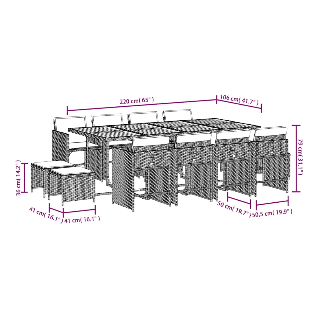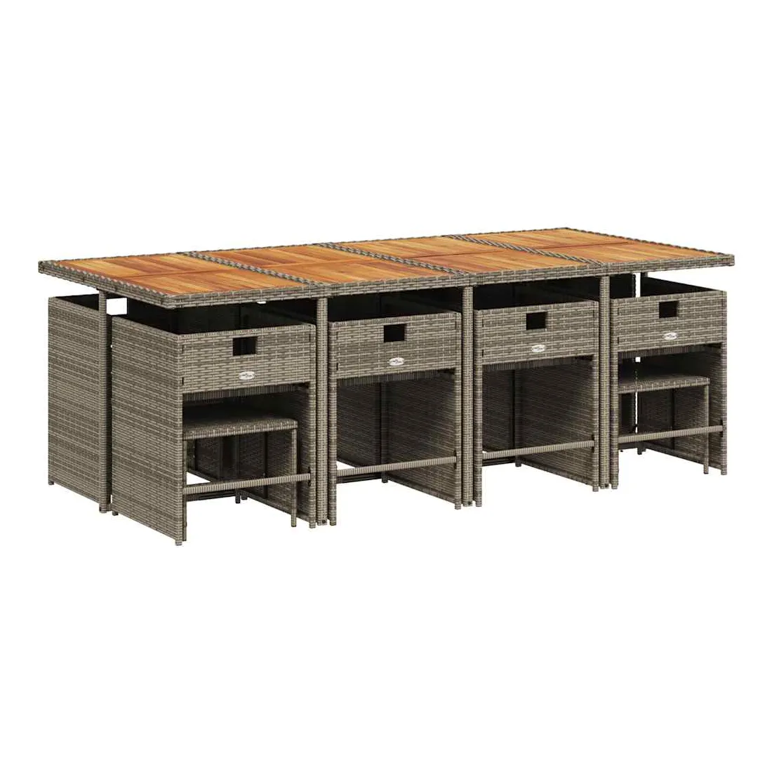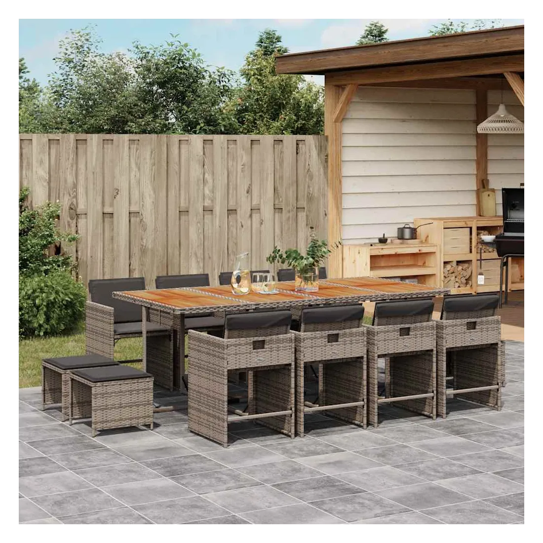 Cet ensemble de salle à manger de jardin est un excellent choix pour les repas en plein air ou pour vous détendre dans le jardin, dans l'arrière-cour ou sur la terrasse. Matériau durable : la résine tressée, également connue sous le nom de poly rotin, est un matériau synthétique solide et nécessitant peu d'entretien qui ressemble au rotin naturel. Il est léger, facile à nettoyer et couramment utilisé pour les meubles d'extérieur en raison de sa durabilité et de ses propriétés de résistance aux intempéries.Rangement compact : ces chaises sont dotées d'un dossier rabattable, ce qui permet de les ranger facilement sous la table. Une fois pliées, elles se rangent parfaitement sous la table, formant un cube peu encombrant. De plus, les tabourets peuvent également être rangés sous les chaises, maximisant encore davantage l'efficacité de l'espace.Expérience d'assise confortable : ce mobilier d'extérieur, doté de coussins épais, offre une expérience d'assise confortable.Housse amovible et lavable : ces coussins de siège sont dotés de housses amovibles pour un lavage et un entretien faciles. Les housses de coussin de chaise ont un rabat à l'arrière pour une fixation facile aux chaises.Dessus stable et facile à nettoyer : cette table de jardin a un dessus en bois d'acacia robuste, durable et facile à nettoyer avec un chiffon humide. Bon à savoir : Pour que vos meubles d'extérieur restent beaux, nous vous recommandons de les protéger avec une housse imperméable.
