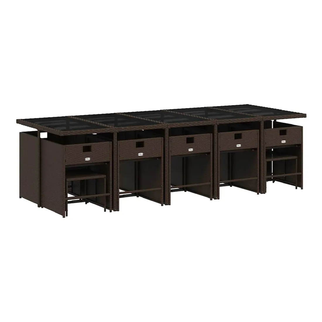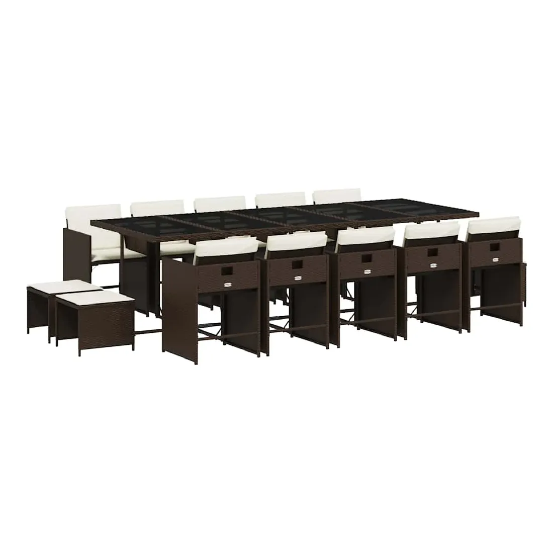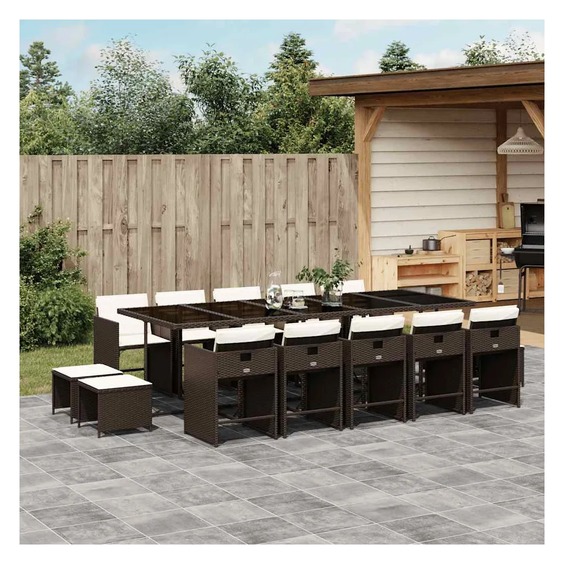 Cet ensemble de salle à manger de jardin est un excellent choix pour les repas en plein air ou pour vous détendre dans le jardin, dans l'arrière-cour ou sur la terrasse. Matériau durable : la résine tressée, également connue sous le nom de poly rotin, est un matériau synthétique solide et nécessitant peu d'entretien qui ressemble au rotin naturel. Il est léger, facile à nettoyer et couramment utilisé pour les meubles d'extérieur en raison de sa durabilité et de ses propriétés de résistance aux intempéries.Rangement compact : ces chaises sont dotées d'un dossier rabattable, ce qui permet de les ranger facilement sous la table. Une fois pliées, elles se rangent parfaitement sous la table, formant un cube peu encombrant. De plus, les tabourets peuvent également être rangés sous les chaises, maximisant encore davantage l'efficacité de l'espace.Expérience d'assise confortable : ce mobilier d'extérieur, doté de coussins épais, offre une expérience d'assise confortable.Housse amovible et lavable : ces coussins de siège sont dotés de housses amovibles pour un lavage et un entretien faciles. Les housses de coussin de chaise ont un rabat à l'arrière pour une fixation facile aux chaises.Dessus stable et facile à nettoyer : cette table de jardin est dotée d'un dessus en verre trempé robuste, durable et facile à nettoyer à l'aide d'un chiffon humide. Bon à savoir : Pour que vos meubles d'extérieur restent beaux, nous vous recommandons de les protéger avec une housse imperméable.