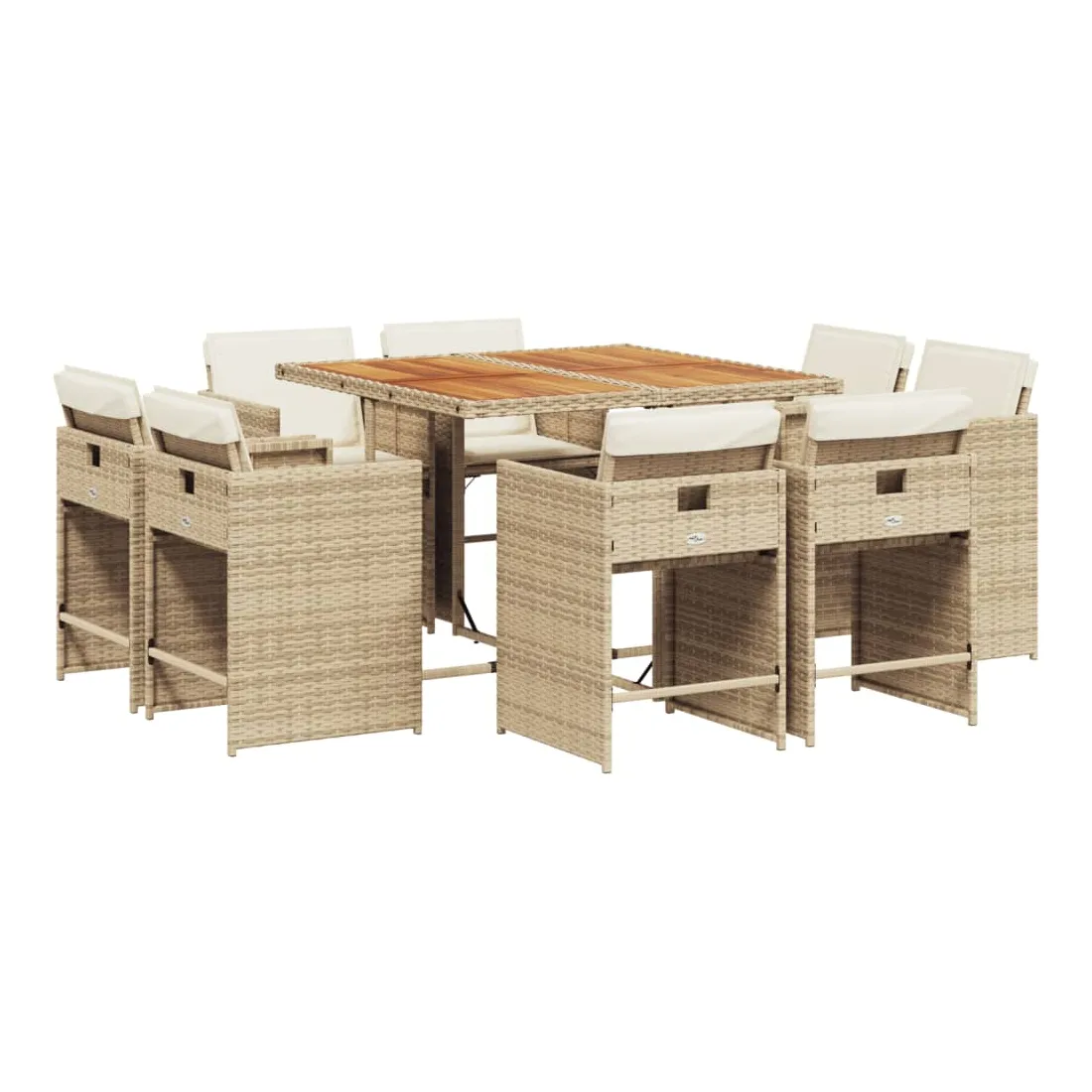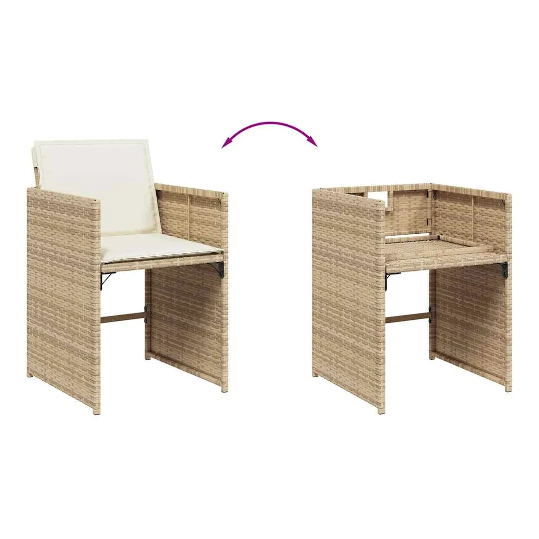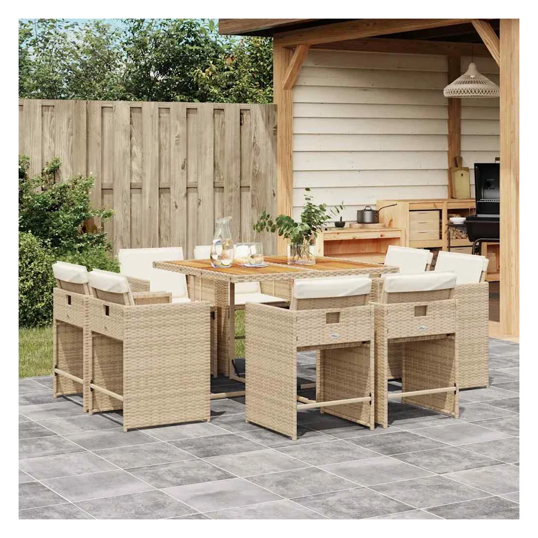Cet ensemble de salle à manger de jardin est un excellent choix pour les repas en plein air ou pour vous détendre dans le jardin, dans l'arrière-cour ou sur la terrasse. Matériau durable : la résine tressée, également connue sous le nom de poly rotin, est un matériau synthétique solide et nécessitant peu d'entretien qui ressemble au rotin naturel. Il est léger, facile à nettoyer et couramment utilisé pour les meubles d'extérieur en raison de sa durabilité et de ses propriétés de résistance aux intempéries.Rangement compact : ces chaises sont dotées d'un dossier rabattable, ce qui permet de les ranger facilement sous la table. Une fois pliées, elles se rangent parfaitement sous la table, formant un cube peu encombrant.Expérience d'assise confortable : ce mobilier d'extérieur, doté de coussins bien rembourrés, offre une expérience d'assise confortable.Housse amovible et lavable : ces coussins de siège sont dotés de housses amovibles pour un lavage et un entretien faciles. Les housses de coussin de chaise ont un rabat à l'arrière pour une fixation facile aux chaises.Dessus stable et facile à nettoyer : cette table de jardin a un dessus en bois d'acacia robuste, durable et facile à nettoyer avec un chiffon humide. Bon à savoir : Pour que vos meubles d'extérieur restent beaux, nous vous recommandons de les protéger avec une housse imperméable.