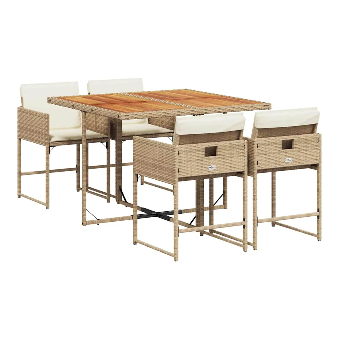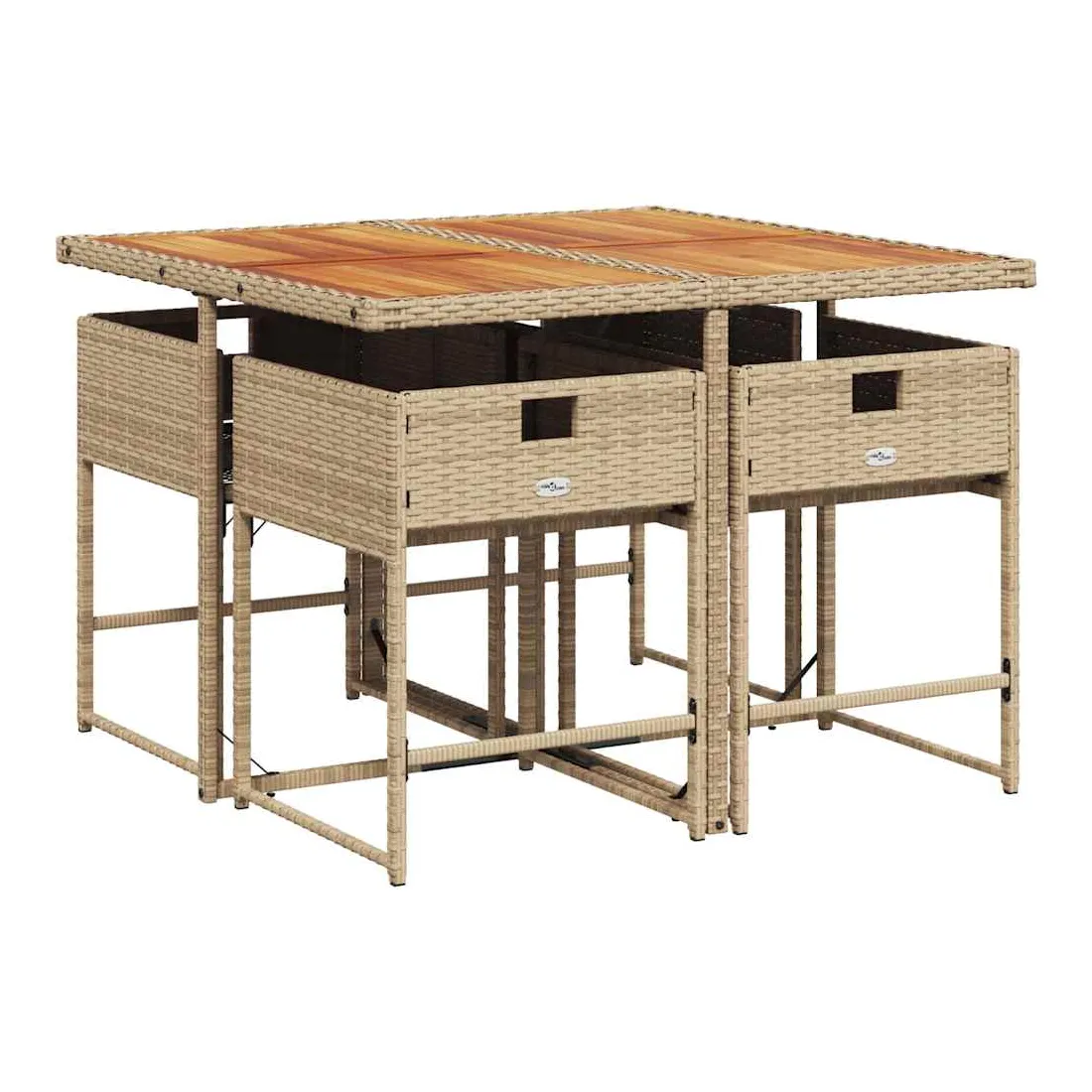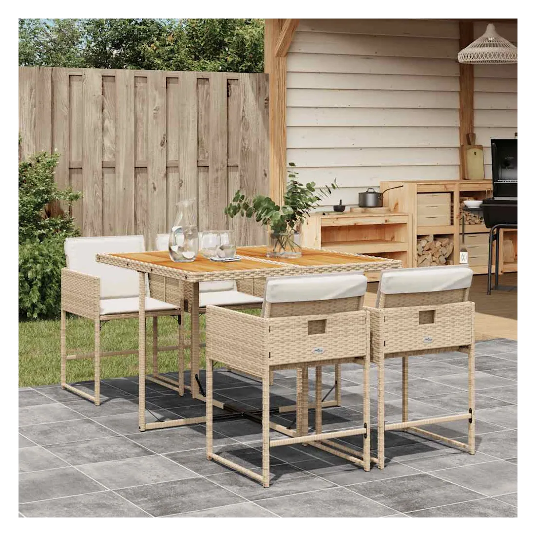 Cet ensemble de salle à manger de jardin est un excellent choix pour les repas en plein air ou pour vous détendre dans le jardin, dans l'arrière-cour ou sur la terrasse. Matériau durable : la résine tressée, également connue sous le nom de poly rotin, est un matériau synthétique solide et nécessitant peu d'entretien qui ressemble au rotin naturel. Il est léger, facile à nettoyer et couramment utilisé pour les meubles d'extérieur en raison de sa durabilité et de ses propriétés de résistance aux intempéries.Rangement compact : ces chaises sont dotées d'un dossier rabattable, ce qui permet de les ranger facilement sous la table. Une fois pliées, elles se rangent parfaitement sous la table, formant un cube peu encombrant.Expérience d'assise confortable : ce mobilier d'extérieur, doté de coussins épais, offre une expérience d'assise confortable.Housse amovible et lavable : ces coussins de siège sont dotés de housses amovibles pour un lavage et un entretien faciles. Les housses de coussin ont un rabat à l'arrière pour une fixation facile aux dossiers.Dessus stable et facile à nettoyer : cette table de jardin a un dessus en bois d'acacia robuste, durable et facile à nettoyer avec un chiffon humide. Bon à savoir :Pour que vos meubles d'extérieur restent beaux, nous vous recommandons de les protéger avec une housse imperméable.