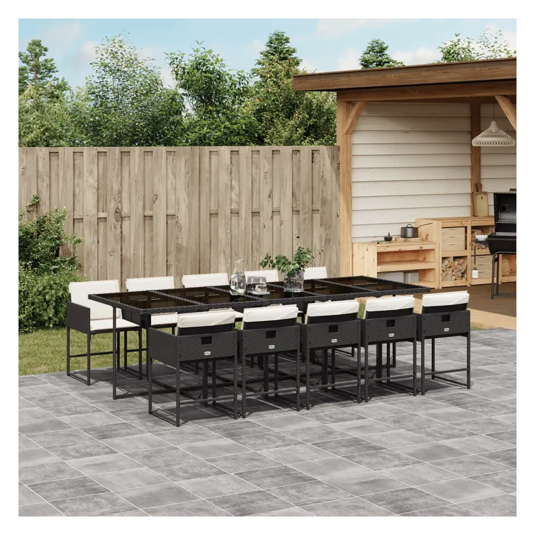Cet ensemble de salle à manger de jardin est un excellent choix pour les repas en plein air ou pour vous détendre dans le jardin, dans l'arrière-cour ou sur la terrasse. Matériau durable : la résine tressée, également connue sous le nom de poly rotin, est un matériau synthétique solide et nécessitant peu d'entretien qui ressemble au rotin naturel. Il est léger, facile à nettoyer et couramment utilisé pour les meubles d'extérieur en raison de sa durabilité et de ses propriétés de résistance aux intempéries.Rangement compact : ces chaises sont dotées d'un dossier rabattable, ce qui permet de les ranger facilement sous la table. Une fois pliées, elles se rangent parfaitement sous la table, formant un cube peu encombrant.Expérience d'assise confortable : ce mobilier d'extérieur, doté de coussins épais, offre une expérience d'assise confortable.Housse amovible et lavable : ces coussins de siège sont dotés de housses amovibles pour un lavage et un entretien faciles. Les housses de coussin ont un rabat à l'arrière pour une fixation facile aux dossiers.Dessus en verre : le dessus de la table d'extérieur est fabriqué en verre trempé solide et durable, ce qui le rend facile à nettoyer avec un chiffon humide et ajoute une touche d'élégance à votre espace extérieur. Bon à savoir :Pour que vos meubles d'extérieur restent beaux, nous vous recommandons de les protéger avec une housse imperméable.