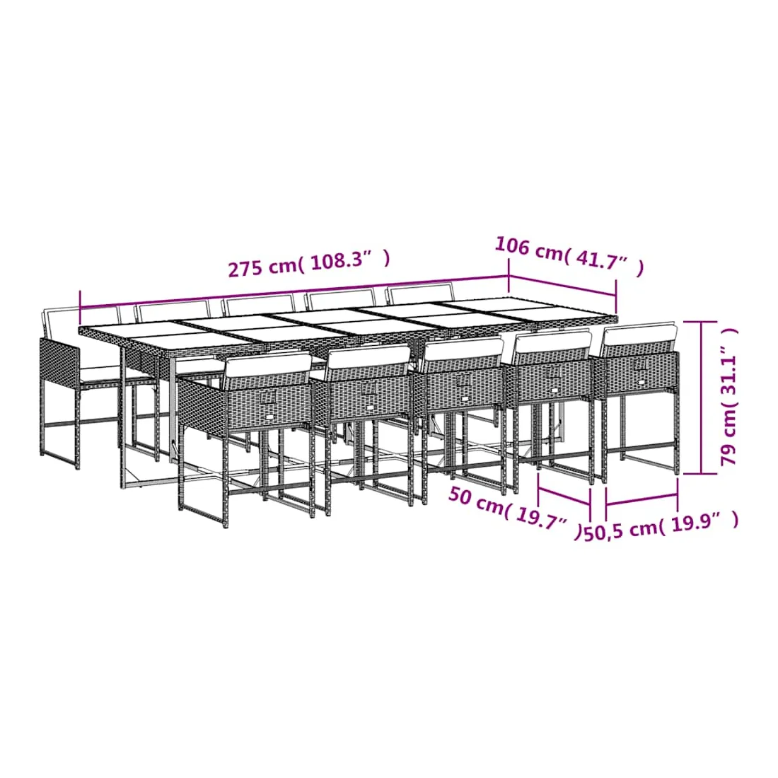 - Dimensions : 275 x 106 x 73 cm (L x l x H)