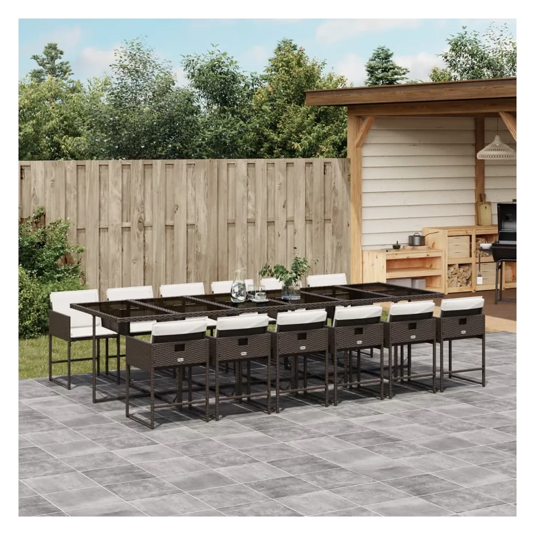 Cet ensemble de salle à manger de jardin est un excellent choix pour les repas en plein air ou pour vous détendre dans le jardin, dans l'arrière-cour ou sur la terrasse. Matériau durable : la résine tressée, également connue sous le nom de poly rotin, est un matériau synthétique solide et nécessitant peu d'entretien qui ressemble au rotin naturel. Il est léger, facile à nettoyer et couramment utilisé pour les meubles d'extérieur en raison de sa durabilité et de ses propriétés de résistance aux intempéries.Rangement compact : ces chaises sont dotées d'un dossier rabattable, ce qui permet de les ranger facilement sous la table. Une fois pliées, elles se rangent parfaitement sous la table, formant un cube peu encombrant.Expérience d'assise confortable : ce mobilier d'extérieur, doté de coussins épais, offre une expérience d'assise confortable.Housse amovible et lavable : ces coussins de siège sont dotés de housses amovibles pour un lavage et un entretien faciles. Les housses de coussin ont un rabat à l'arrière pour une fixation facile aux dossiers.Dessus en verre : le dessus de la table d'extérieur est fabriqué en verre trempé solide et durable, ce qui le rend facile à nettoyer avec un chiffon humide et ajoute une touche d'élégance à votre espace extérieur. Bon à savoir :Pour que vos meubles d'extérieur restent beaux, nous vous recommandons de les protéger avec une housse imperméable.