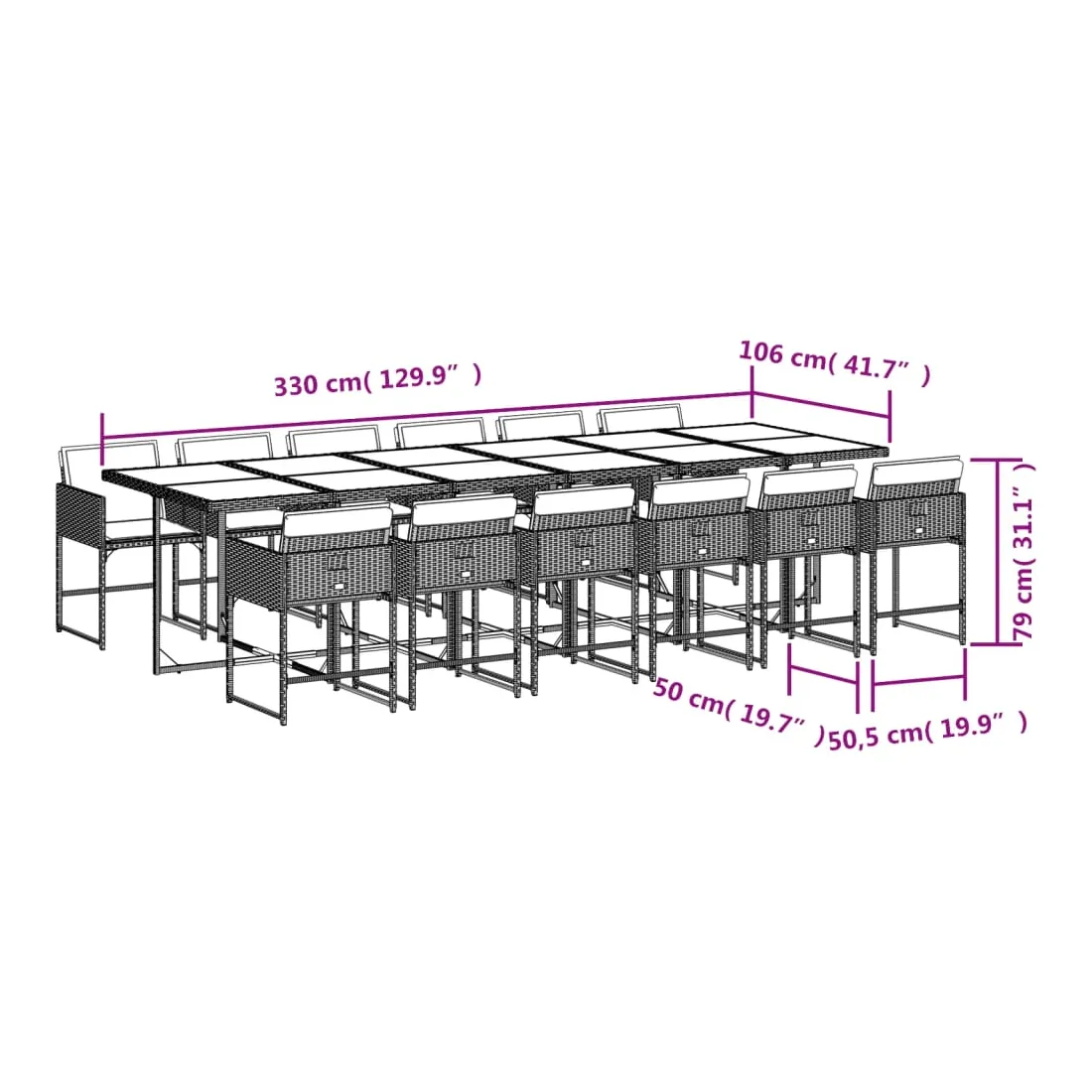 - Dimensions : 330 x 106 x 73 cm (L x l x H)