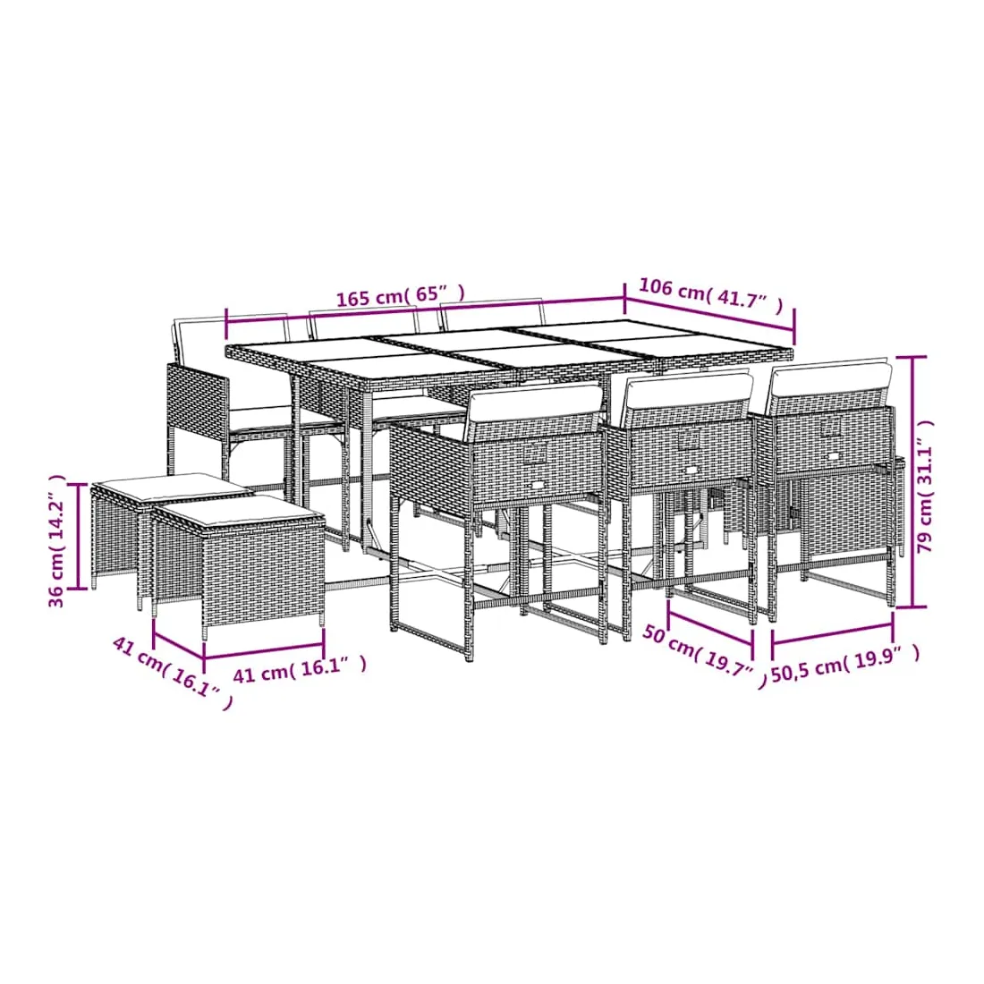 Cet ensemble de salle à manger de jardin est un excellent choix pour les repas en plein air ou pour vous détendre dans le jardin, dans l'arrière-cour ou sur la terrasse. Matériau durable : la résine tressée, également connue sous le nom de poly rotin, est un matériau synthétique solide et nécessitant peu d'entretien qui ressemble au rotin naturel. Il est léger, facile à nettoyer et couramment utilisé pour les meubles d'extérieur en raison de sa durabilité et de ses propriétés de résistance aux intempéries.Rangement compact : ces chaises sont dotées d'un dossier rabattable, ce qui permet de les ranger facilement sous la table. Une fois pliées, elles se rangent parfaitement sous la table, formant un cube peu encombrant. De plus, les tabourets peuvent également être rangés sous les chaises, maximisant encore davantage l'efficacité de l'espace.Expérience d'assise confortable : ce mobilier d'extérieur, doté de coussins épais, offre une expérience d'assise confortable.Housse amovible et lavable : ces coussins de siège sont dotés de housses amovibles pour un lavage et un entretien faciles. Les housses de coussin ont un rabat à l'arrière pour une fixation facile aux dossiers.Dessus en verre : le dessus de la table d'extérieur est fabriqué en verre trempé solide et durable, ce qui le rend facile à nettoyer avec un chiffon humide et ajoute une touche d'élégance à votre espace extérieur. Bon à savoir : Pour que vos meubles d'extérieur restent beaux, nous vous recommandons de les protéger avec une housse imperméable.