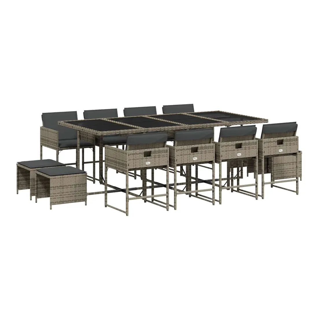 Cet ensemble de salle à manger de jardin est un excellent choix pour les repas en plein air ou pour vous détendre dans le jardin, dans l'arrière-cour ou sur la terrasse. Matériau durable : la résine tressée, également connue sous le nom de poly rotin, est un matériau synthétique solide et nécessitant peu d'entretien qui ressemble au rotin naturel. Il est léger, facile à nettoyer et couramment utilisé pour les meubles d'extérieur en raison de sa durabilité et de ses propriétés de résistance aux intempéries.Rangement compact : ces chaises sont dotées d'un dossier rabattable, ce qui permet de les ranger facilement sous la table. Une fois pliées, elles se rangent parfaitement sous la table, formant un cube peu encombrant. De plus, les tabourets peuvent également être rangés sous les chaises, maximisant encore davantage l'efficacité de l'espace.Expérience d'assise confortable : ce mobilier d'extérieur, doté de coussins épais, offre une expérience d'assise confortable.Housse amovible et lavable : ces coussins de siège sont dotés de housses amovibles pour un lavage et un entretien faciles. Les housses de coussin ont un rabat à l'arrière pour une fixation facile aux dossiers.Dessus en verre : le dessus de la table d'extérieur est fabriqué en verre trempé solide et durable, ce qui le rend facile à nettoyer avec un chiffon humide et ajoute une touche d'élégance à votre espace extérieur. Bon à savoir : Pour que vos meubles d'extérieur restent beaux, nous vous recommandons de les protéger avec une housse imperméable.