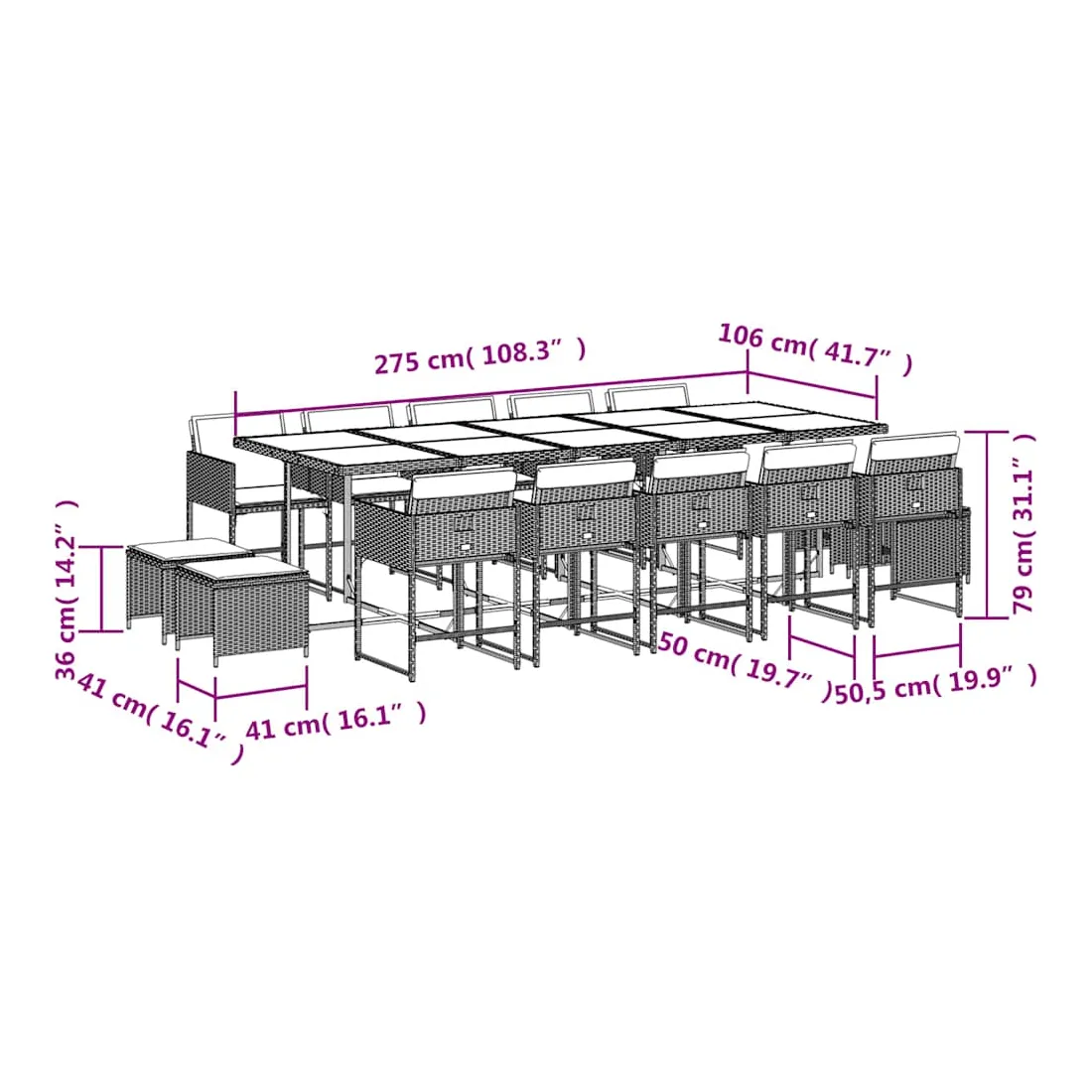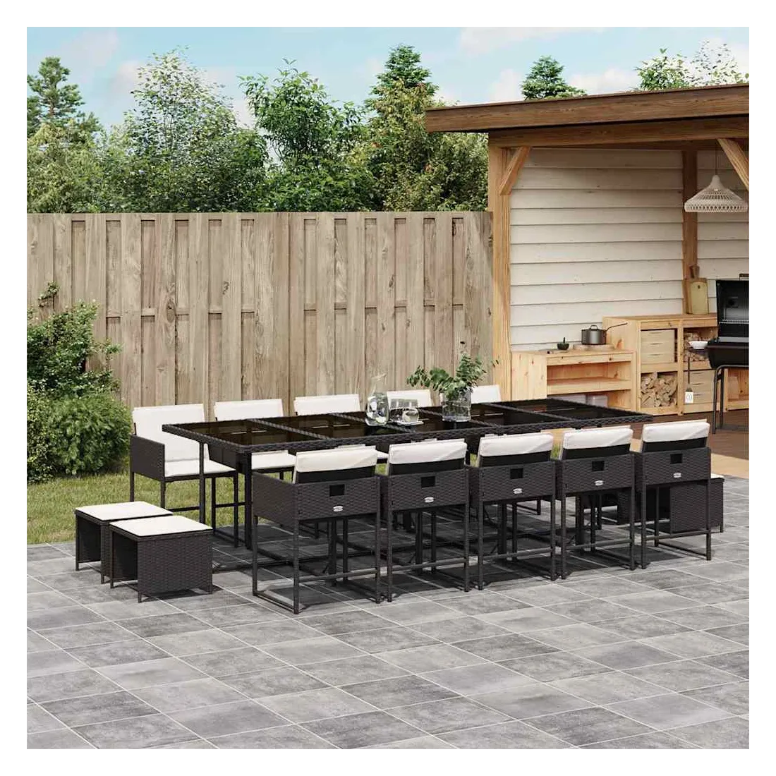 Cet ensemble de salle à manger de jardin est un excellent choix pour les repas en plein air ou pour vous détendre dans le jardin, dans l'arrière-cour ou sur la terrasse. Matériau durable : la résine tressée, également connue sous le nom de poly rotin, est un matériau synthétique solide et nécessitant peu d'entretien qui ressemble au rotin naturel. Il est léger, facile à nettoyer et couramment utilisé pour les meubles d'extérieur en raison de sa durabilité et de ses propriétés de résistance aux intempéries.Rangement compact : ces chaises sont dotées d'un dossier rabattable, ce qui permet de les ranger facilement sous la table. Une fois pliées, elles se rangent parfaitement sous la table, formant un cube peu encombrant. De plus, les tabourets peuvent également être rangés sous les chaises, maximisant encore davantage l'efficacité de l'espace.Expérience d'assise confortable : ce mobilier d'extérieur, doté de coussins épais, offre une expérience d'assise confortable.Housse amovible et lavable : ces coussins de siège sont dotés de housses amovibles pour un lavage et un entretien faciles. Les housses de coussin ont un rabat à l'arrière pour une fixation facile aux dossiers.Dessus en verre : le dessus de la table d'extérieur est fabriqué en verre trempé solide et durable, ce qui le rend facile à nettoyer avec un chiffon humide et ajoute une touche d'élégance à votre espace extérieur. Bon à savoir : Pour que vos meubles d'extérieur restent beaux, nous vous recommandons de les protéger avec une housse imperméable.