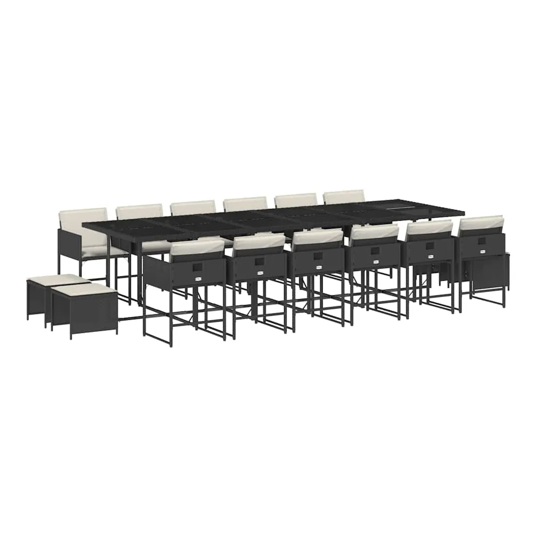 Cet ensemble de salle à manger de jardin est un excellent choix pour les repas en plein air ou pour vous détendre dans le jardin, dans l'arrière-cour ou sur la terrasse. Matériau durable : la résine tressée, également connue sous le nom de poly rotin, est un matériau synthétique solide et nécessitant peu d'entretien qui ressemble au rotin naturel. Il est léger, facile à nettoyer et couramment utilisé pour les meubles d'extérieur en raison de sa durabilité et de ses propriétés de résistance aux intempéries.Rangement compact : ces chaises sont dotées d'un dossier rabattable, ce qui permet de les ranger facilement sous la table. Une fois pliées, elles se rangent parfaitement sous la table, formant un cube peu encombrant. De plus, les tabourets peuvent également être rangés sous les chaises, maximisant encore davantage l'efficacité de l'espace.Expérience d'assise confortable : ce mobilier d'extérieur, doté de coussins épais, offre une expérience d'assise confortable.Housse amovible et lavable : ces coussins de siège sont dotés de housses amovibles pour un lavage et un entretien faciles. Les housses de coussin ont un rabat à l'arrière pour une fixation facile aux dossiers.Dessus en verre : le dessus de la table d'extérieur est fabriqué en verre trempé solide et durable, ce qui le rend facile à nettoyer avec un chiffon humide et ajoute une touche d'élégance à votre espace extérieur. Bon à savoir : Pour que vos meubles d'extérieur restent beaux, nous vous recommandons de les protéger avec une housse imperméable.