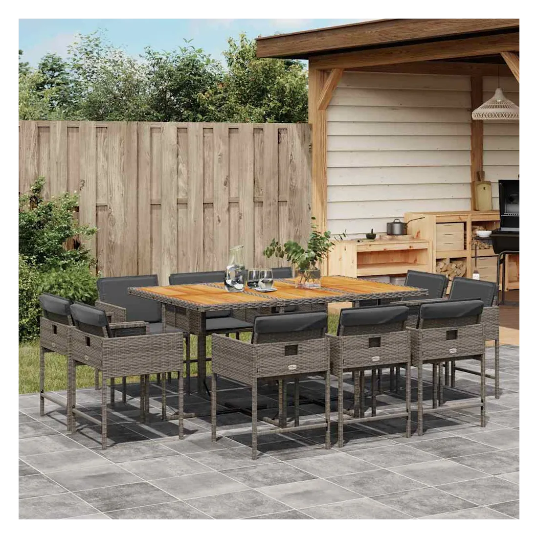 Cet ensemble de salle à manger de jardin est un excellent choix pour les repas en plein air ou pour vous détendre dans le jardin, l'arrière-cour ou le patio. Matériau durable : la résine tressée, également connue sous le nom de poly rotin, est un matériau synthétique solide et nécessitant peu d'entretien qui ressemble au rotin naturel. Il est léger, facile à nettoyer et couramment utilisé pour les meubles d'extérieur en raison de sa durabilité et de ses propriétés de résistance aux intempéries.Rangement compact : ces chaises sont dotées d'un dossier rabattable, ce qui permet de les ranger facilement sous la table. Une fois pliées, elles se rangent parfaitement sous la table, formant un cube peu encombrant.Expérience d'assise confortable : ce mobilier d'extérieur, doté de coussins épais, offre une expérience d'assise confortable.Housse amovible et lavable : ces coussins de siège sont dotés de housses amovibles pour un lavage et un entretien faciles. Les housses de coussin de chaise ont un rabat à l'arrière pour une fixation facile aux chaises.Dessus stable et facile à nettoyer : cette table de patio a un dessus en bois d'acacia robuste, durable et facile à nettoyer avec un chiffon humide. Bon à savoir :Pour que vos meubles d'extérieur restent beaux, nous vous recommandons de les protéger avec une housse imperméable.