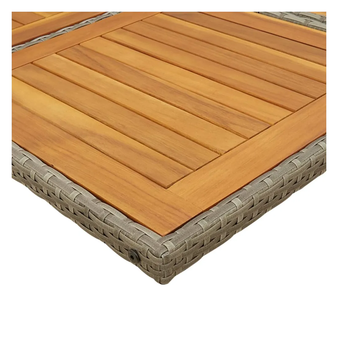 - Matériau : résine tressée, acier enduit de poudre, bois d'acacia massif avec finition à l'huile