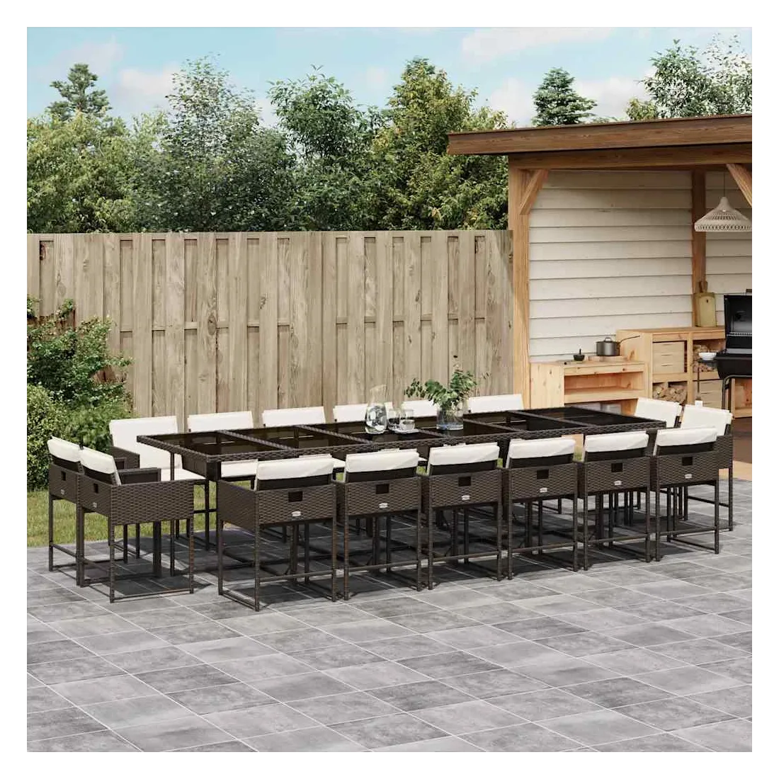 Cet ensemble de salle à manger de jardin est un excellent choix pour les repas en plein air ou pour vous détendre dans le jardin, l'arrière-cour ou le patio. Matériau durable : la résine tressée, également connue sous le nom de poly rotin, est un matériau synthétique solide et nécessitant peu d'entretien qui ressemble au rotin naturel. Il est léger, facile à nettoyer et couramment utilisé pour les meubles d'extérieur en raison de sa durabilité et de ses propriétés de résistance aux intempéries.Rangement compact : ces chaises sont dotées d'un dossier rabattable, ce qui permet de les ranger facilement sous la table. Une fois pliées, elles se rangent parfaitement sous la table, formant un cube peu encombrant.Expérience d'assise confortable : ce mobilier d'extérieur, doté de coussins épais, offre une expérience d'assise confortable.Housse amovible et lavable : ces coussins de siège sont dotés de housses amovibles pour un lavage et un entretien faciles. Les housses de coussin de chaise ont un rabat à l'arrière pour une fixation facile aux chaises.Dessus en verre : le dessus de la table de jardin est fabriqué en verre trempé solide et durable, ce qui le rend facile à nettoyer avec un chiffon humide et ajoute une touche d'élégance à votre espace extérieur. Bon à savoir :Pour que vos meubles d'extérieur restent beaux, nous vous recommandons de les protéger avec une housse imperméable.