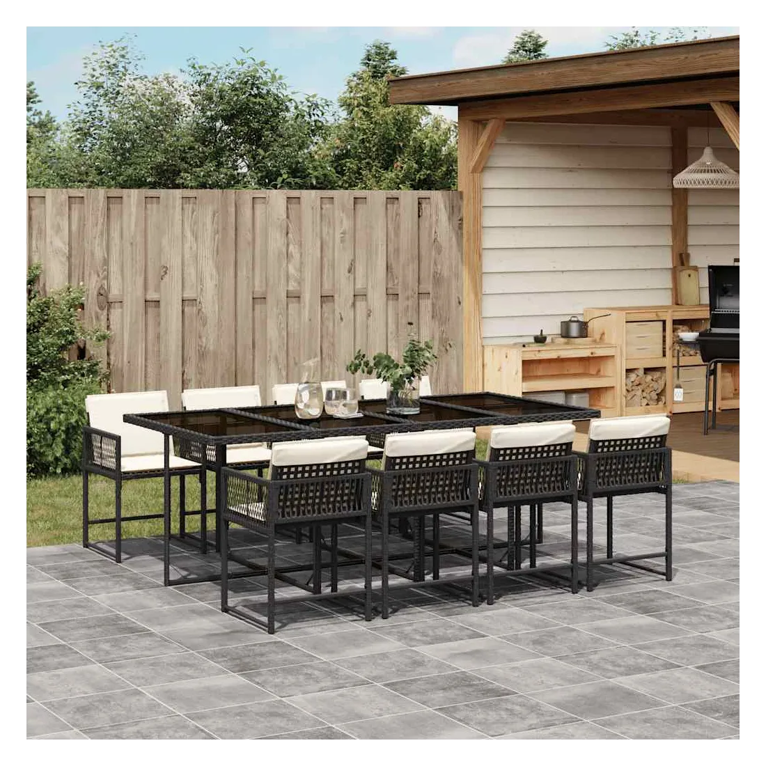 Cet ensemble de salle à manger de jardin est un excellent choix pour les repas en plein air ou pour vous détendre dans le jardin, dans l'arrière-cour ou sur la terrasse. Matériau durable : la résine tressée, également connue sous le nom de poly rotin, est un matériau synthétique solide et nécessitant peu d'entretien qui ressemble au rotin naturel. Il est léger, facile à nettoyer et couramment utilisé pour les meubles d'extérieur en raison de sa durabilité et de ses propriétés de résistance aux intempéries.Rangement compact : ces chaises sont dotées d'un dossier rabattable, ce qui permet de les ranger facilement sous la table. Une fois pliées, elles se rangent parfaitement sous la table, formant un cube peu encombrant.Expérience d'assise confortable : ce mobilier d'extérieur, doté de coussins épais, offre une expérience d'assise confortable.Housse amovible et lavable : ces coussins de siège sont dotés de housses amovibles pour un lavage et un entretien faciles. Les housses de coussin ont un rabat à l'arrière pour une fixation facile aux dossiers.Dessus en verre : le dessus de la table d'extérieur est fabriqué en verre trempé solide et durable, ce qui le rend facile à nettoyer avec un chiffon humide et ajoute une touche d'élégance à votre espace extérieur. Bon à savoir :Pour que vos meubles d'extérieur restent beaux, nous vous recommandons de les protéger avec une housse imperméable.