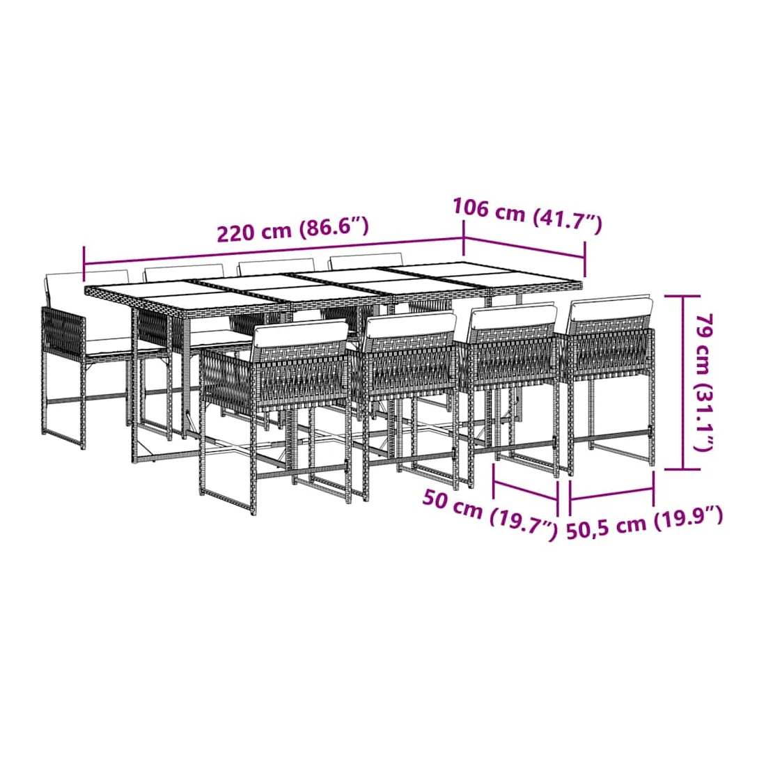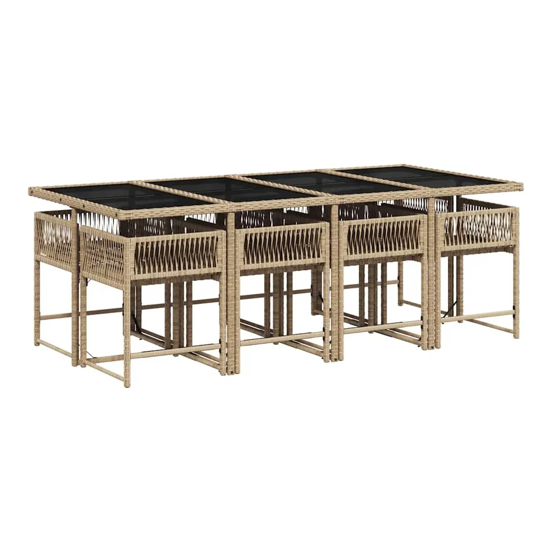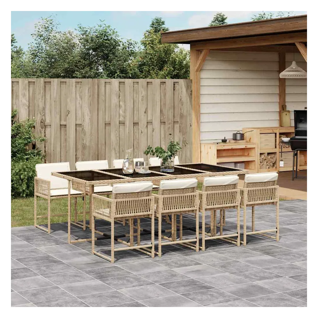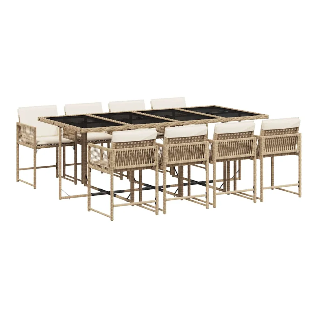 Ensemble à manger de jardin et coussins 9 pcs beige Poly rotin