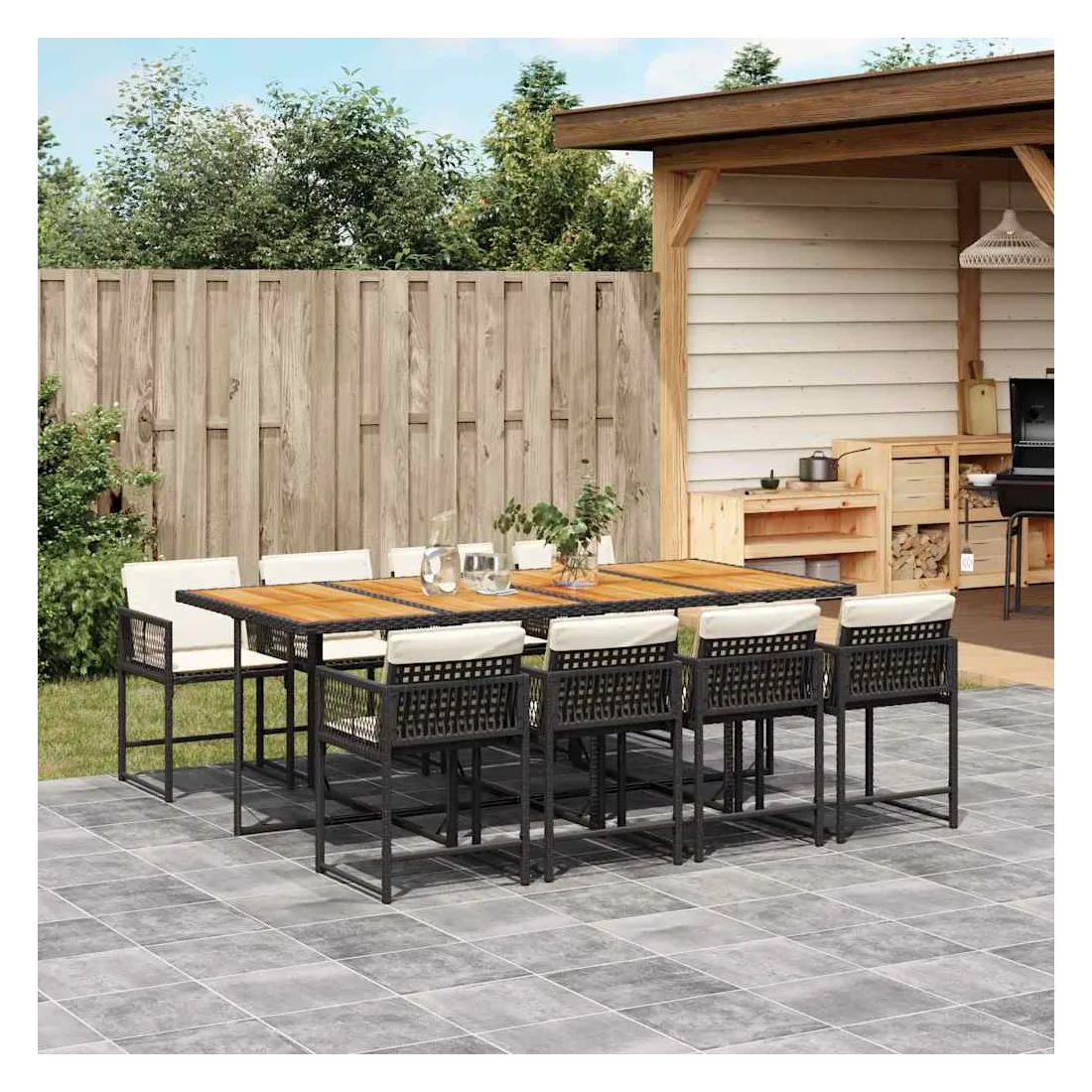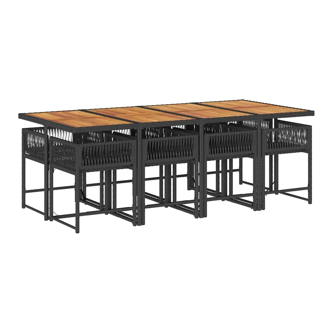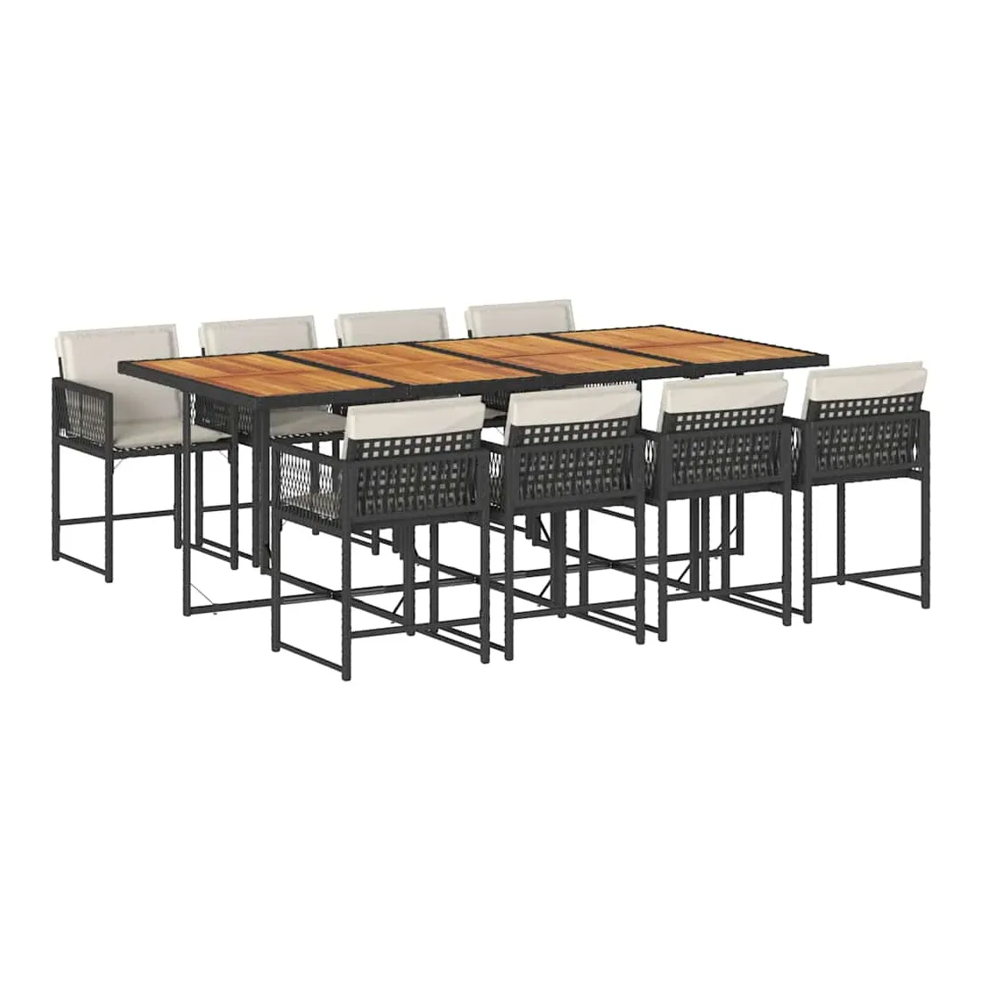 Ensemble à manger de jardin 9pcs coussins noir résine tressée