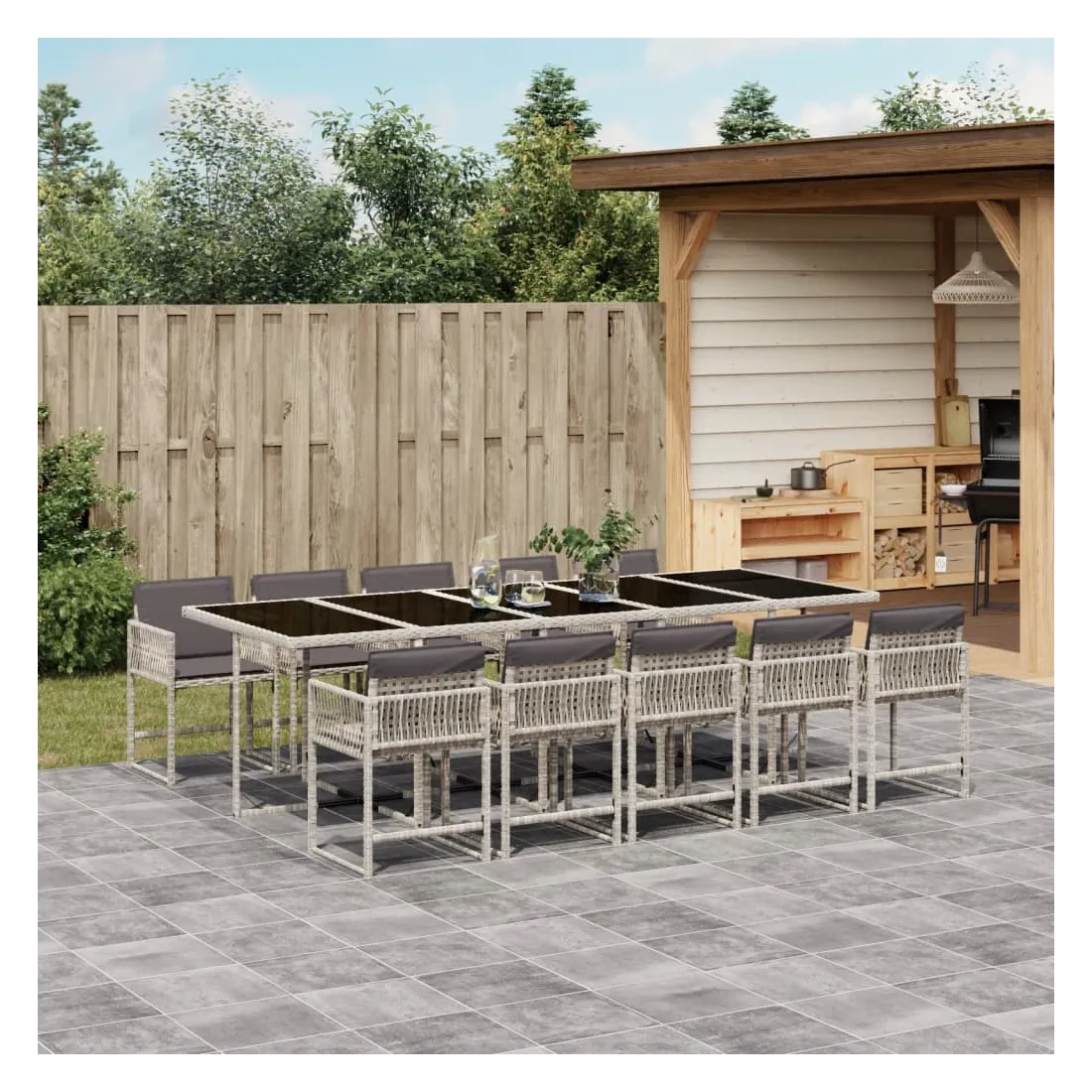 Cet ensemble de salle à manger de jardin est un excellent choix pour les repas en plein air ou pour vous détendre dans le jardin, dans l'arrière-cour ou sur la terrasse. Matériau durable : la résine tressée, également connue sous le nom de poly rotin, est un matériau synthétique solide et nécessitant peu d'entretien qui ressemble au rotin naturel. Il est léger, facile à nettoyer et couramment utilisé pour les meubles d'extérieur en raison de sa durabilité et de ses propriétés de résistance aux intempéries.Rangement compact : ces chaises sont dotées d'un dossier rabattable, ce qui permet de les ranger facilement sous la table. Une fois pliées, elles se rangent parfaitement sous la table, formant un cube peu encombrant.Expérience d'assise confortable : ce mobilier d'extérieur, doté de coussins épais, offre une expérience d'assise confortable.Housse amovible et lavable : ces coussins de siège sont dotés de housses amovibles pour un lavage et un entretien faciles. Les housses de coussin ont un rabat à l'arrière pour une fixation facile aux dossiers.Dessus en verre : le dessus de la table d'extérieur est fabriqué en verre trempé solide et durable, ce qui le rend facile à nettoyer avec un chiffon humide et ajoute une touche d'élégance à votre espace extérieur. Bon à savoir :Pour que vos meubles d'extérieur restent beaux, nous vous recommandons de les protéger avec une housse imperméable.