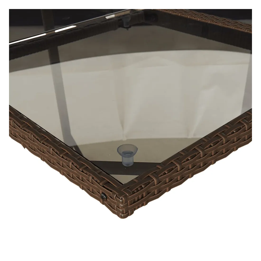 - Matériau : résine tressée, acier enduit de poudre, verre trempé