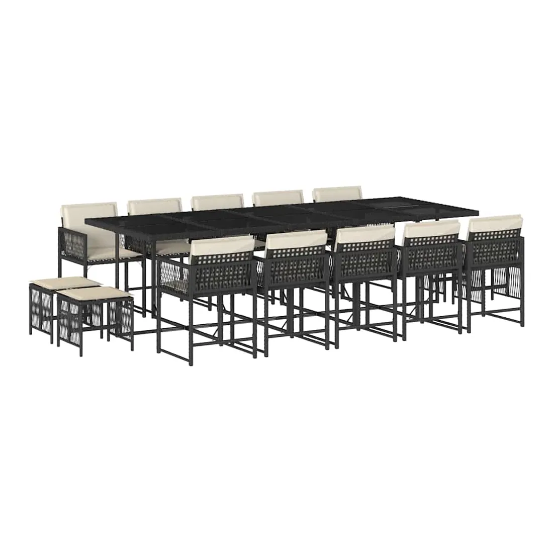 Cet ensemble de salle à manger de jardin est un excellent choix pour les repas en plein air ou pour vous détendre dans le jardin, dans l'arrière-cour ou sur la terrasse. Matériau durable : la résine tressée, également connue sous le nom de poly rotin, est un matériau synthétique solide et nécessitant peu d'entretien qui ressemble au rotin naturel. Il est léger, facile à nettoyer et couramment utilisé pour les meubles d'extérieur en raison de sa durabilité et de ses propriétés de résistance aux intempéries.Rangement compact : ces chaises sont dotées d'un dossier rabattable, ce qui permet de les ranger facilement sous la table. Une fois pliées, elles se rangent parfaitement sous la table, formant un cube peu encombrant. De plus, les tabourets peuvent également être rangés sous les chaises, maximisant encore davantage l'efficacité de l'espace.Expérience d'assise confortable : ce mobilier d'extérieur, doté de coussins épais, offre une expérience d'assise confortable.Housse amovible et lavable : ces coussins de siège sont dotés de housses amovibles pour un lavage et un entretien faciles. Les housses de coussin ont un rabat à l'arrière pour une fixation facile aux dossiers.Dessus en verre : le dessus de la table d'extérieur est fabriqué en verre trempé solide et durable, ce qui le rend facile à nettoyer avec un chiffon humide et ajoute une touche d'élégance à votre espace extérieur. Bon à savoir :Pour que vos meubles d'extérieur restent beaux, nous vous recommandons de les protéger avec une housse imperméable.