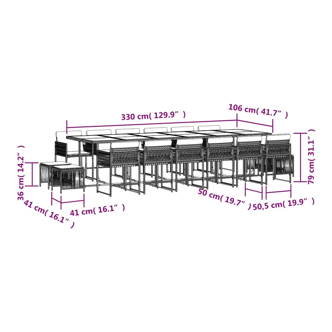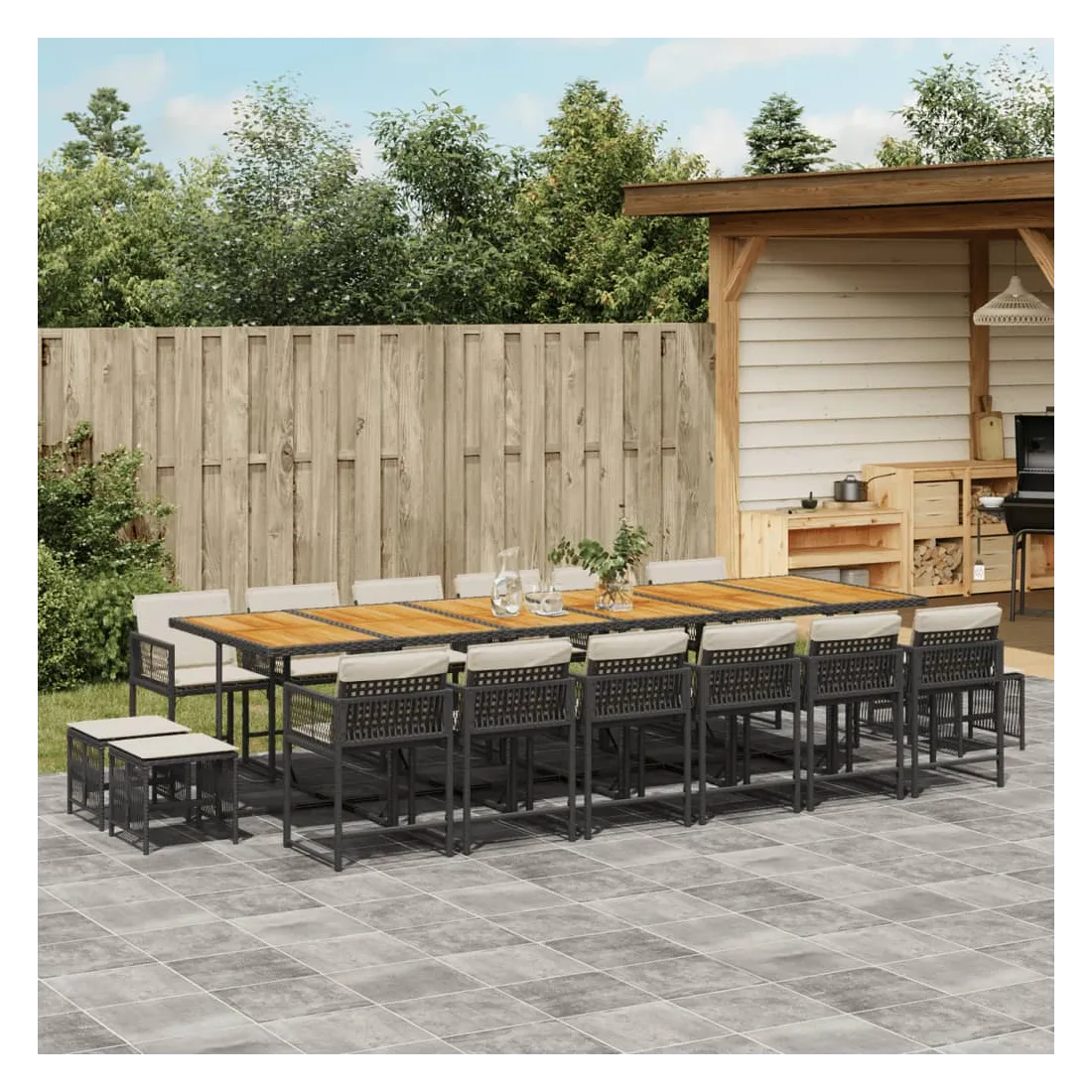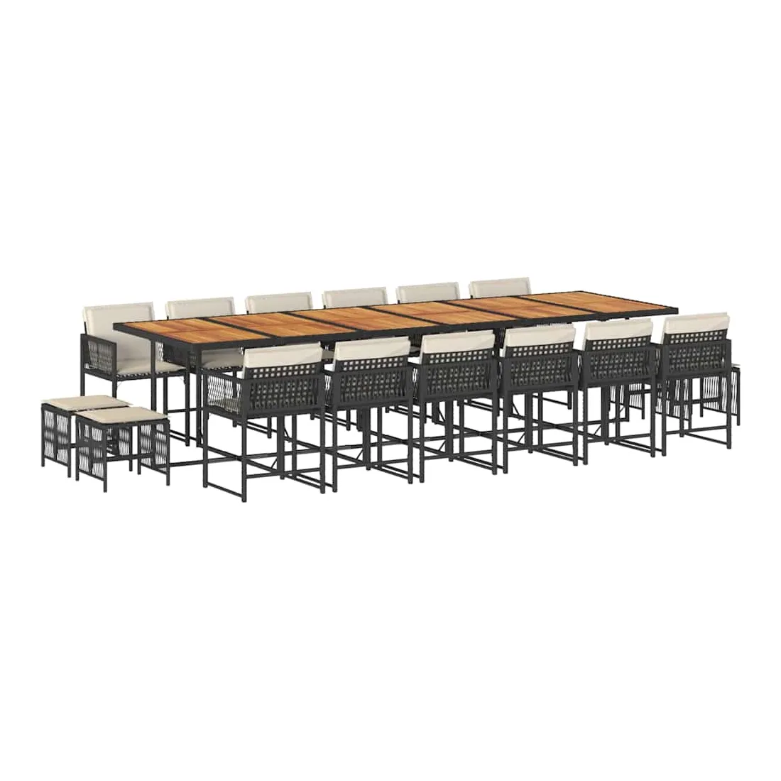 Ensemble à manger de jardin 17 pcs coussins noir résine tressée