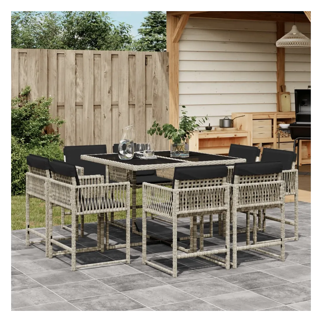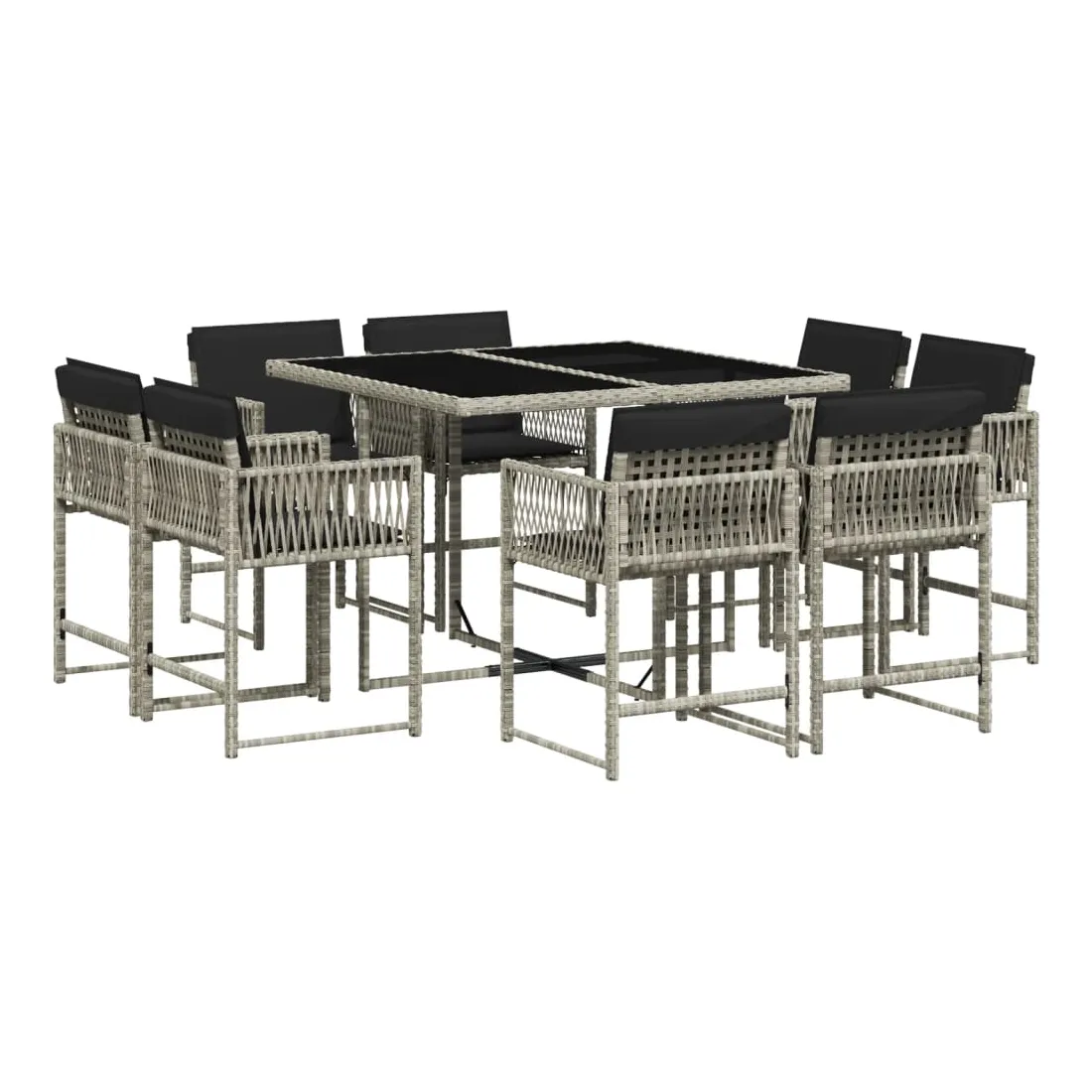 Cet ensemble de salle à manger de jardin est un excellent choix pour les repas en plein air ou pour vous détendre dans le jardin, dans l'arrière-cour ou sur la terrasse. Matériau durable : la résine tressée, également connue sous le nom de poly rotin, est un matériau synthétique solide et nécessitant peu d'entretien qui ressemble au rotin naturel. Il est léger, facile à nettoyer et couramment utilisé pour les meubles d'extérieur en raison de sa durabilité et de ses propriétés de résistance aux intempéries.Rangement compact : ces chaises sont dotées d'un dossier rabattable, ce qui permet de les ranger facilement sous la table. Une fois pliées, elles se rangent parfaitement sous la table, formant un cube peu encombrant.Expérience d'assise confortable : ce mobilier d'extérieur, doté de coussins épais, offre une expérience d'assise confortable.Housse amovible et lavable : ces coussins de siège sont dotés de housses amovibles pour un lavage et un entretien faciles. Les housses de coussin ont un rabat à l'arrière pour une fixation facile aux dossiers.Dessus en verre : le dessus de la table d'extérieur est fabriqué en verre trempé solide et durable, ce qui le rend facile à nettoyer avec un chiffon humide et ajoute une touche d'élégance à votre espace extérieur. Bon à savoir :Pour que vos meubles d'extérieur restent beaux, nous vous recommandons de les protéger avec une housse imperméable.