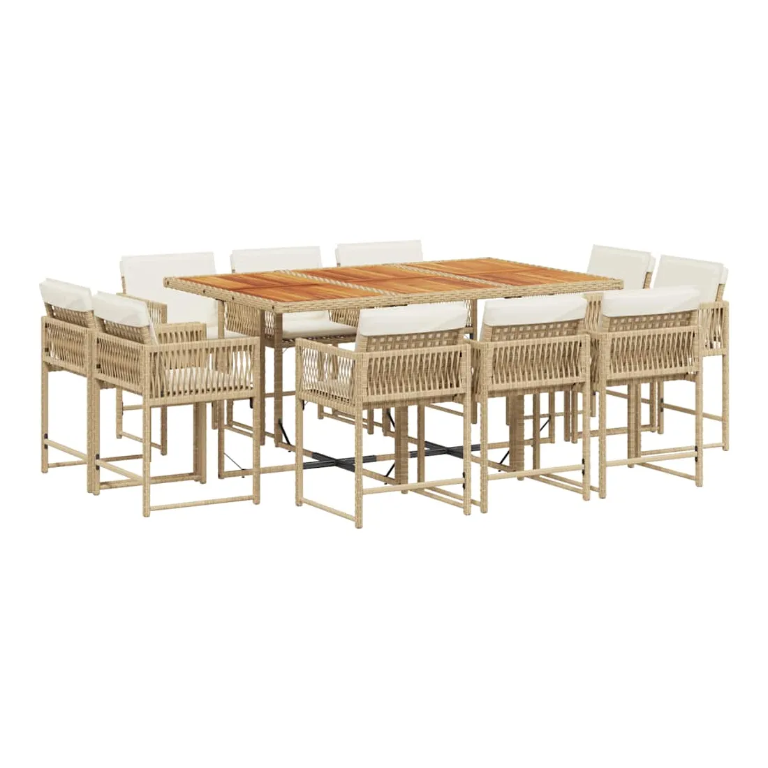 Cet ensemble de salle à manger de jardin est un excellent choix pour les repas en plein air ou pour vous détendre dans le jardin, dans l'arrière-cour ou sur la terrasse. Matériau durable : la résine tressée, également connue sous le nom de poly rotin, est un matériau synthétique solide et nécessitant peu d'entretien qui ressemble au rotin naturel. Il est léger, facile à nettoyer et couramment utilisé pour les meubles d'extérieur en raison de sa durabilité et de ses propriétés de résistance aux intempéries.Rangement compact : ces chaises sont dotées d'un dossier rabattable, ce qui permet de les ranger facilement sous la table. Une fois pliées, elles se rangent parfaitement sous la table, formant un cube peu encombrant.Expérience d'assise confortable : ce mobilier d'extérieur, doté de coussins épais, offre une expérience d'assise confortable.Housse amovible et lavable : ces coussins de siège sont dotés de housses amovibles pour un lavage et un entretien faciles. Les housses de coussin ont un rabat à l'arrière pour une fixation facile aux dossiers.Dessus stable et facile à nettoyer : cette table de jardin a un dessus en bois d'acacia robuste, durable et facile à nettoyer avec un chiffon humide. Bon à savoir :Pour que vos meubles d'extérieur restent beaux, nous vous recommandons de les protéger avec une housse imperméable.