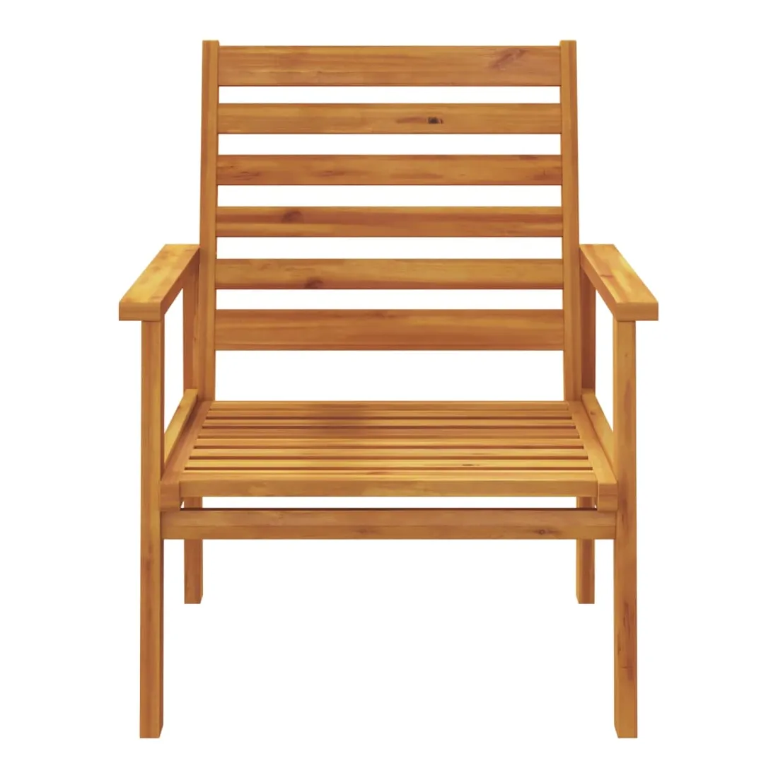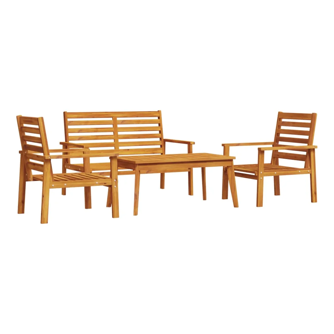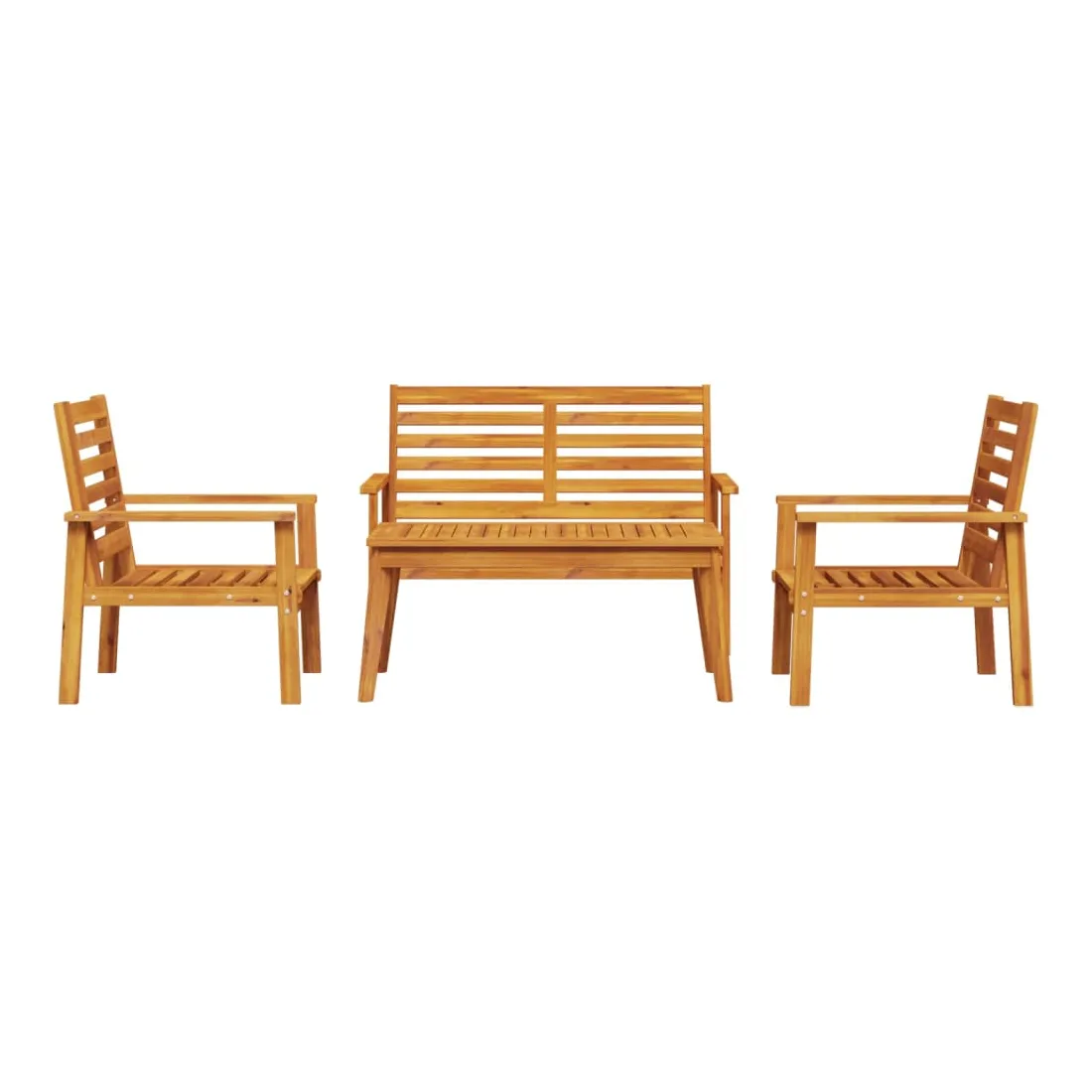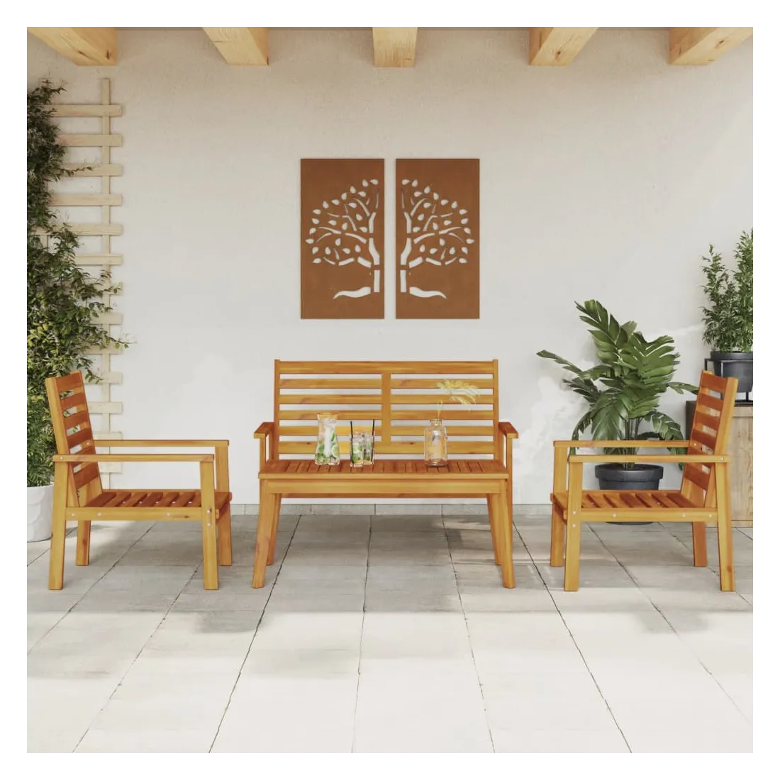 Cet ensemble de salon de jardin en bois a un design élégant et constitue un excellent choix pour vous détendre et profiter du jardin ou du patio. Bois d'acacia massif : l'ensemble de salon d'extérieur est fabriqué en bois d'acacia massif pour plus de robustesse et de stabilité. Le bois d'acacia solide est un beau matériau naturel. Le bois d'acacia a de beaux grains de bois qui rendent chaque meuble unique et légèrement différent les uns des autres.Expérience d'assise confortable : doté d'accoudoirs et d'un dossier, le salon de jardin vous offre un confort optimal.Dessus stable et facile à nettoyer : cette table de jardin a un dessus en bois d'acacia robuste, durable et facile à nettoyer avec un chiffon humide.Nombreuses applications : le siège de jardin est parfait pour tout porche avant, patio, arrière-cour, pelouse, jardin, etc. Bon à savoir :Pour que vos meubles d'extérieur restent beaux, nous vous recommandons de les protéger avec une housse imperméable.