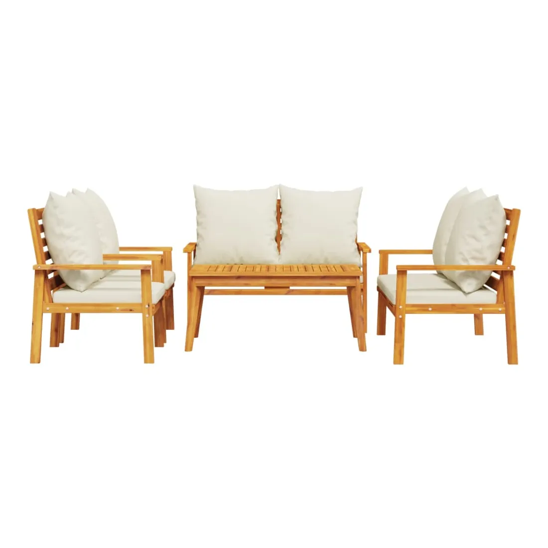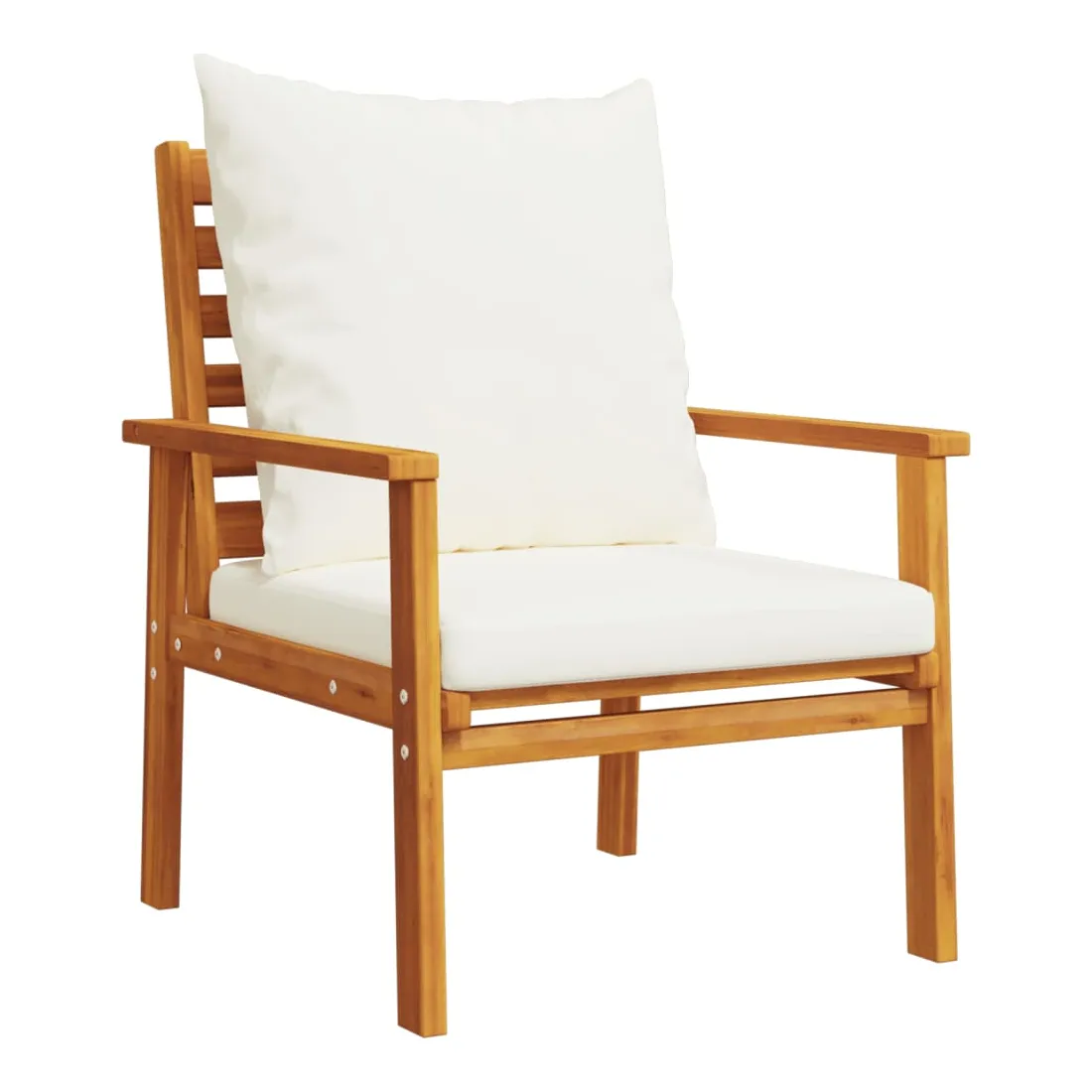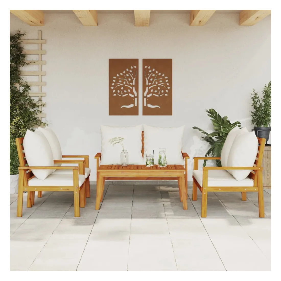 Cet ensemble de salon de jardin en bois a un design élégant et constitue un excellent choix pour vous détendre et profiter du jardin ou du patio. Bois d'acacia massif : l'ensemble de salon d'extérieur est fabriqué en bois d'acacia massif pour plus de robustesse et de stabilité. Le bois d'acacia solide est un beau matériau naturel. Le bois d'acacia a de beaux grains de bois qui rendent chaque meuble unique et légèrement différent les uns des autres.Expérience d'assise confortable : doté d'accoudoirs et d'un dossier, l'ensemble de salon de terrasse vous offre le plus grand confort. De plus, les coussins bien rembourrés offrent du confort pendant votre temps d'assise.Dessus stable et facile à nettoyer : cette table de jardin a un dessus en bois d'acacia robuste, durable et facile à nettoyer avec un chiffon humide.Nombreuses applications : le siège de jardin est parfait pour tout porche avant, patio, arrière-cour, pelouse, jardin, etc. Bon à savoir :Pour que vos meubles d'extérieur restent beaux, nous vous recommandons de les protéger avec une housse imperméable.