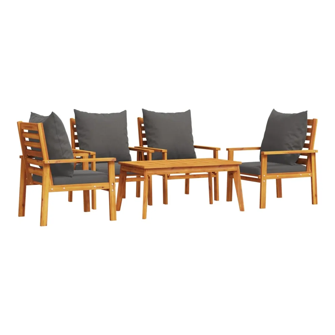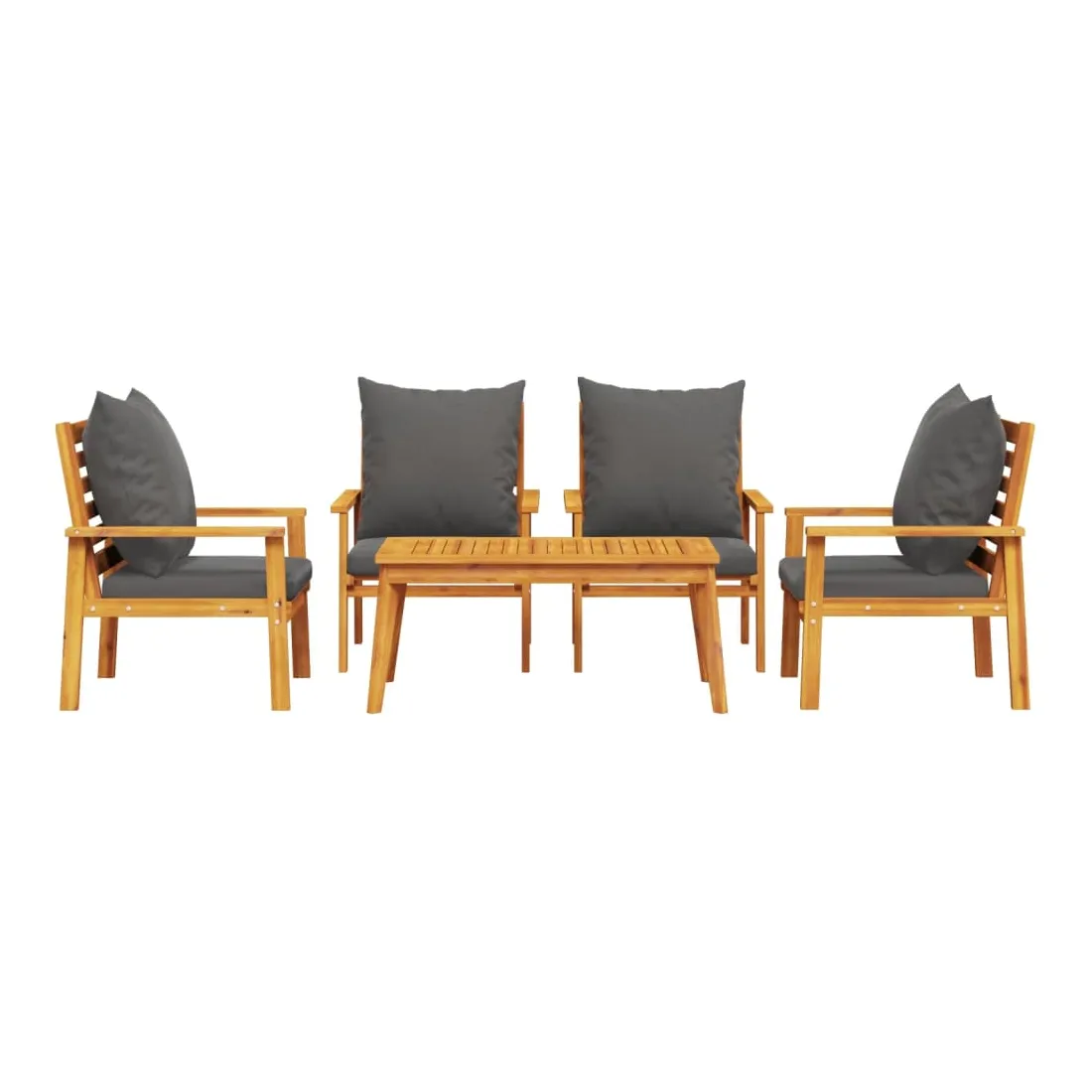 Cet ensemble de salon de jardin en bois a un design élégant et constitue un excellent choix pour vous détendre et profiter du jardin ou du patio. Bois d'acacia massif : l'ensemble de salon d'extérieur est fabriqué en bois d'acacia massif pour plus de robustesse et de stabilité. Le bois d'acacia solide est un beau matériau naturel. Le bois d'acacia a de beaux grains de bois qui rendent chaque meuble unique et légèrement différent les uns des autres.Expérience d'assise confortable : doté d'accoudoirs et d'un dossier, l'ensemble de salon de terrasse vous offre le plus grand confort. De plus, les coussins bien rembourrés offrent du confort pendant votre temps d'assise.Dessus stable et facile à nettoyer : cette table de jardin a un dessus en bois d'acacia robuste, durable et facile à nettoyer avec un chiffon humide.Nombreuses applications : le siège de jardin est parfait pour tout porche avant, patio, arrière-cour, pelouse, jardin, etc. Bon à savoir :Pour que vos meubles d'extérieur restent beaux, nous vous recommandons de les protéger avec une housse imperméable.